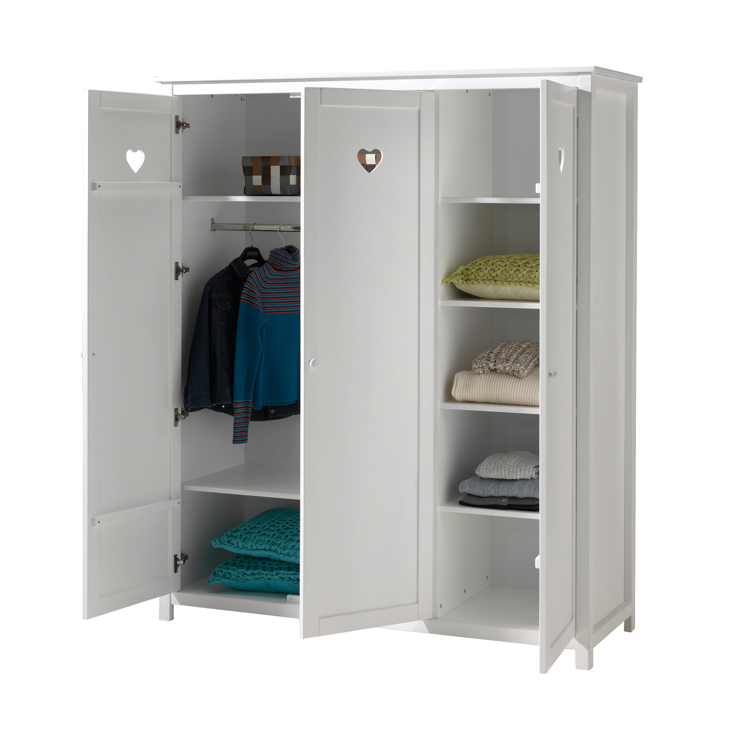Met deze 3-deurskast heb je heel veel ruimte voor het opbergen van een complete garderobe. Achter de 2 linker deuren liggen twee legplanken en een kledingroede. Achter de rechterdeur heb je 5 vakken voor het opbergen van allerlei kleine kledingstukken als ondergoed, sokken etc.