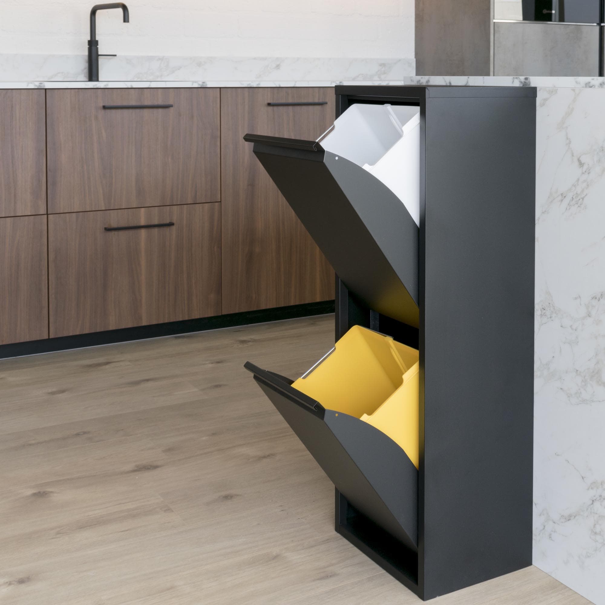 Met deze afvalbak is scheiden niet meer vervelend. Door zijn stijlvolle design is deze afvalscheider welkom in elke ruimte in je huis of kantoor. De inhoud van de emmer is 17,4 liter.