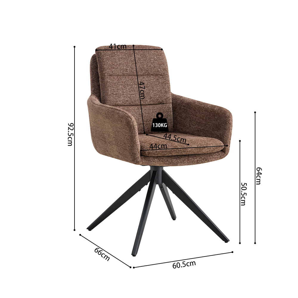 Ontdek de set van 2 Armstoelen Irma! Met een breedte van 59 cm, hoogte van 93 cm en diepte van 65 cm bieden deze stoelen zowel comfort als stijl. Het stevige metalen onderstel zorgt voor stabiliteit, terwijl de stofzitting met een zithoogte van 50,5 cm en zitdiepte van 44,5 cm ideaal is voor een ontspannen zitervaring. Plus, met armleuningen en een draaifunctie zijn ze ook nog eens praktisch in gebruik.