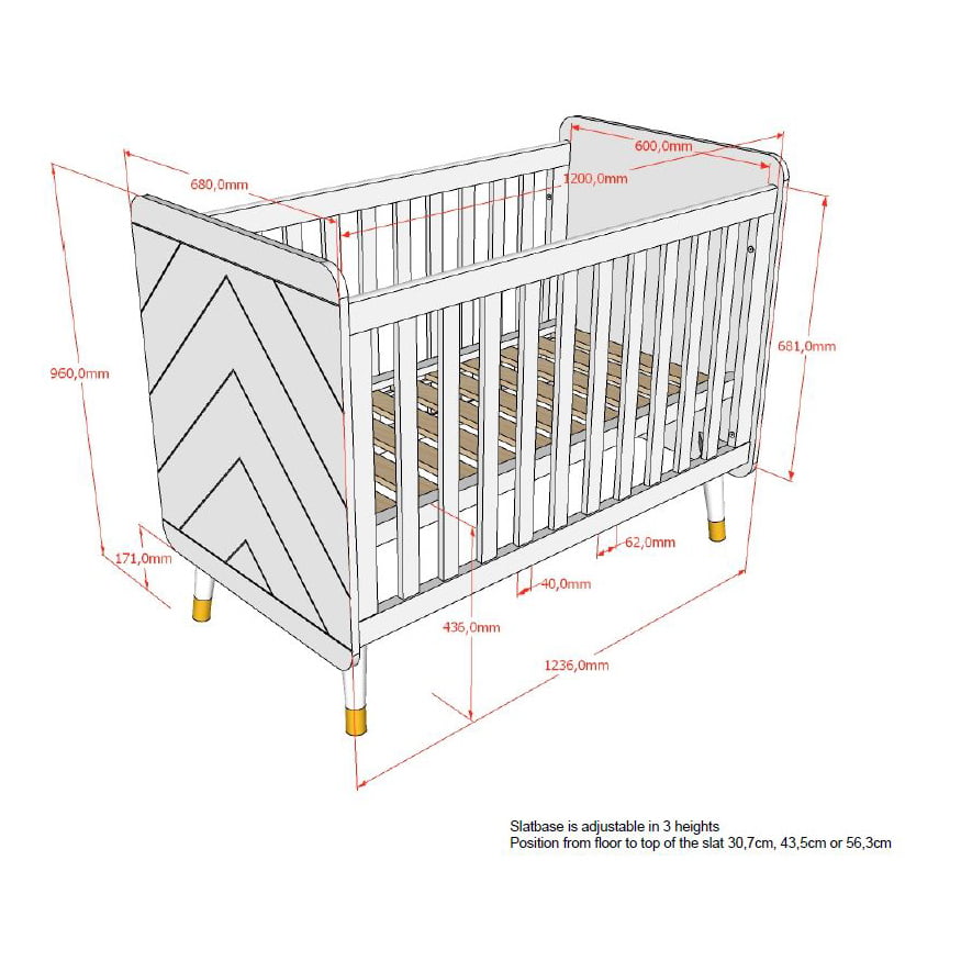 De stevige constructie en verstelbare bodem zorgen voor een veilige en comfortabele slaapomgeving voor je baby. De lattenbodem is inbegrepen voor extra gemak.