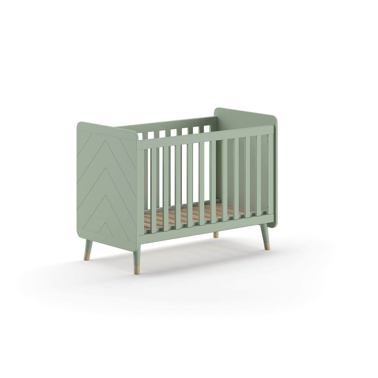 Dit prachtige mintgroene babybed is een echte eyecatcher voor de babykamer. Gemaakt van hoogwaardig hout en voorzien van gouden accenten rond de pootjes, voegt dit tijdloze ontwerp een vleugje elegantie toe aan elke babykamer.