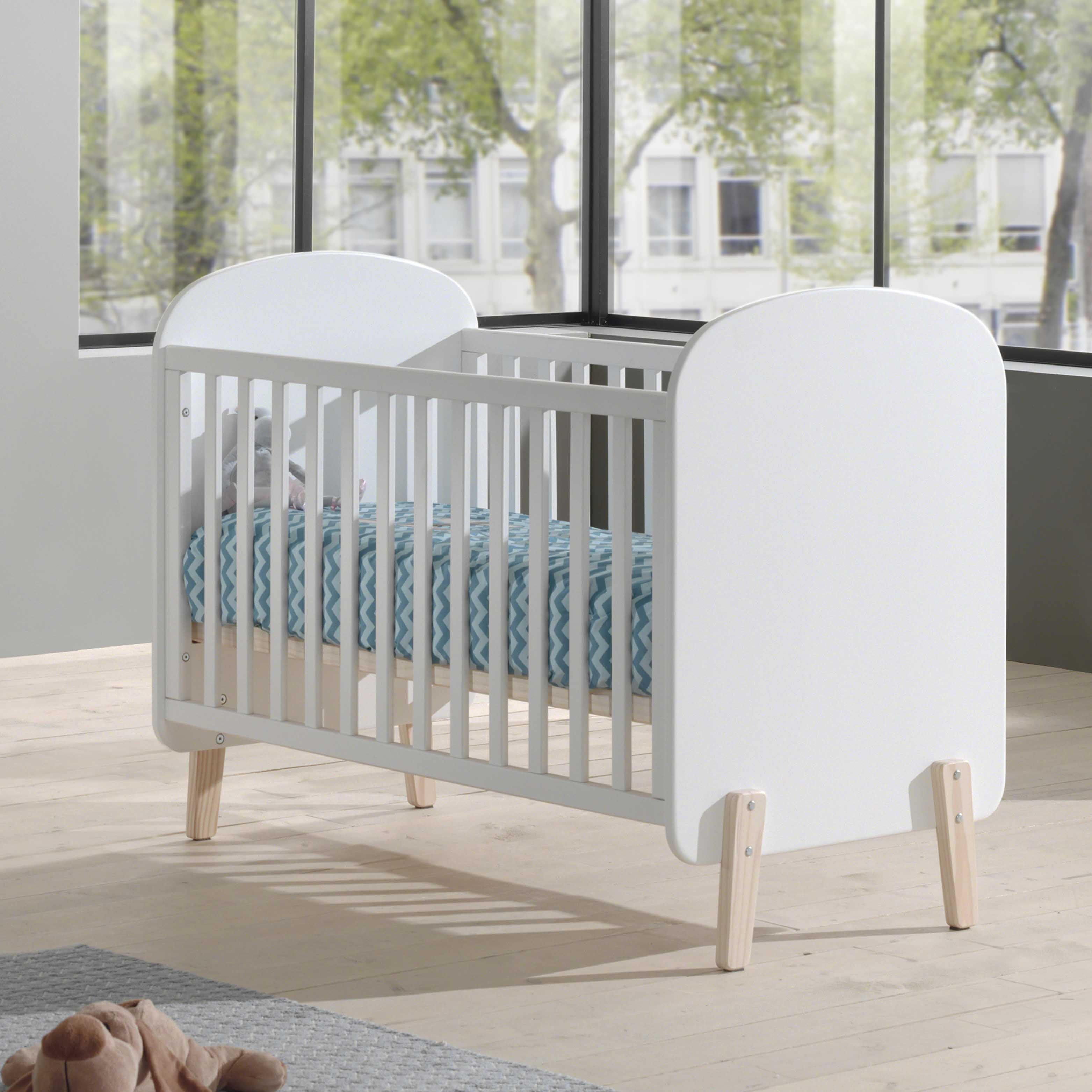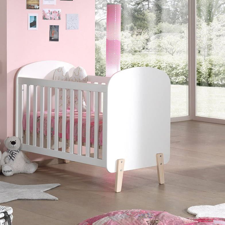Met dit prachtige babybed ben je verzekerd van een veilige nachtrust voor je kind. Het bed is vervaardigd uit MDF en is afgewerkt in een witte lak. Door zijn afgeronde hoofd- en voeteneinde in combinatie met de massief houten pootjes wordt een warme uitstraling gecreëerd. De lattenbodem is verstelbaar in 3 hoogtes en wordt meegeleverd. Bekijk ook de bijpassende meubels uit deze serie!
