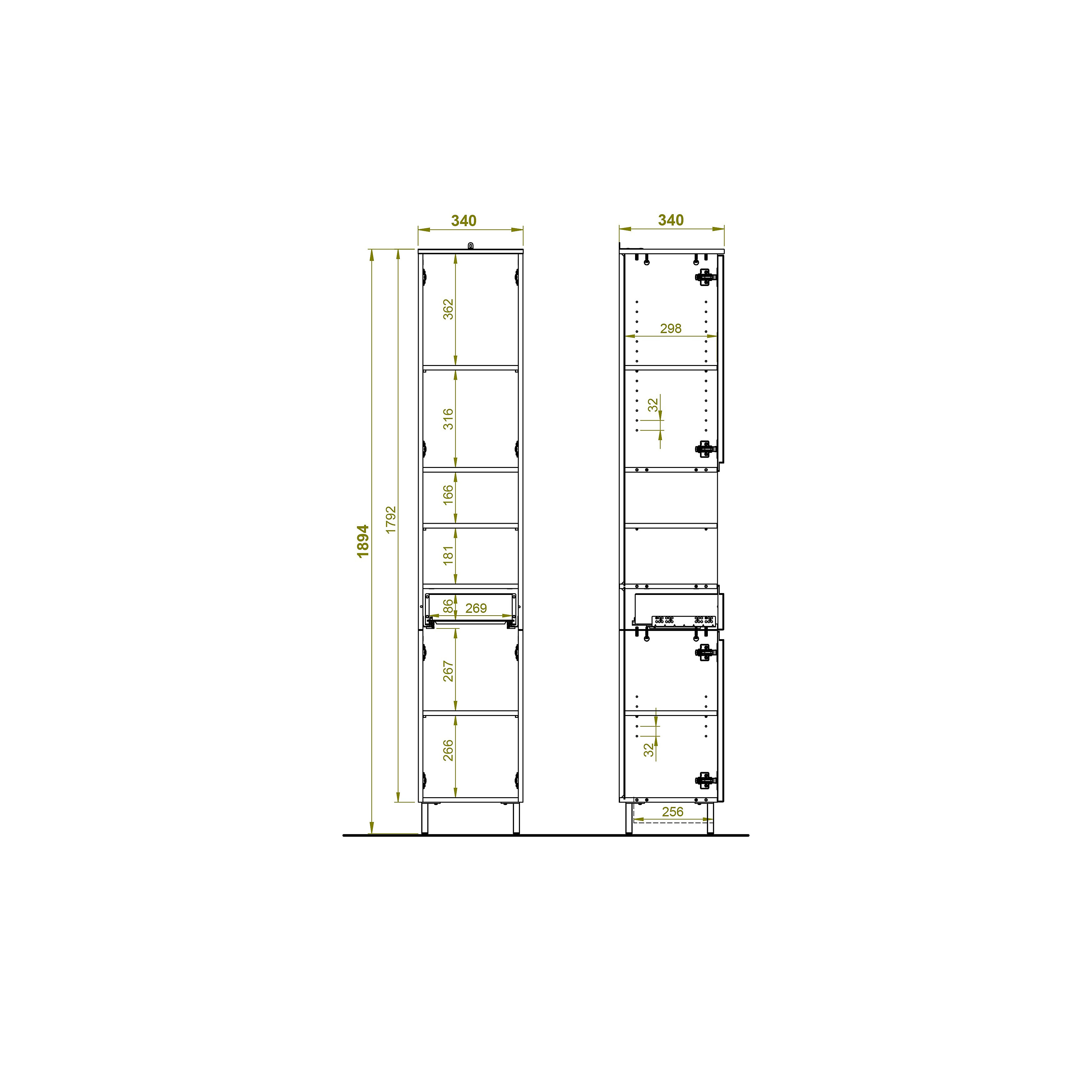 Met verstelbare en vaste planken kun je de opbergruimte aanpassen aan jouw behoeften. De MDF-fronten zijn thermoformed en gecoat voor extra bescherming en duurzaamheid. Deze kolomkast is voorzien van geïntegreerde dempers voor langzame en stille sluiting van de deuren en laden.