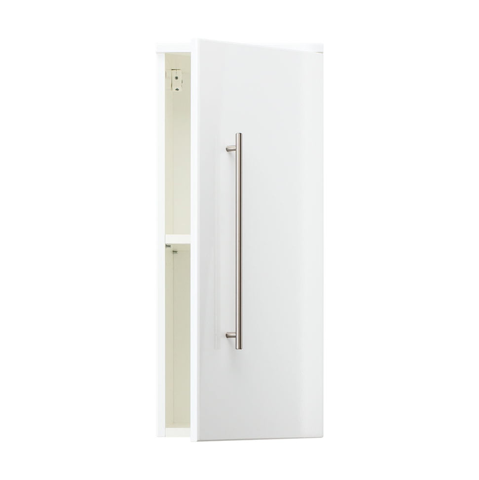 Dit kastje met zijn praktische afmetingen kun je in elke badkamer kwijt! Achter de deur bevinden zich 2 verstelbare legplanken om al je spullen op kwijt te kunnen. De deuren zijn voorzien van een soft-close systeem met een handvat van roestvrij staal. Door zijn melamine afwerking is deze kast gemakkelijk schoon te houden en uitermate geschikt voor gebruik in de badkamer. De deur kan zowel links als rechts gemonteerd worden, deze kast is 30 cm breed, 70 cm hoog en 20,5 cm diep en is ook verkrijgbaar in het antraciet en eiken.