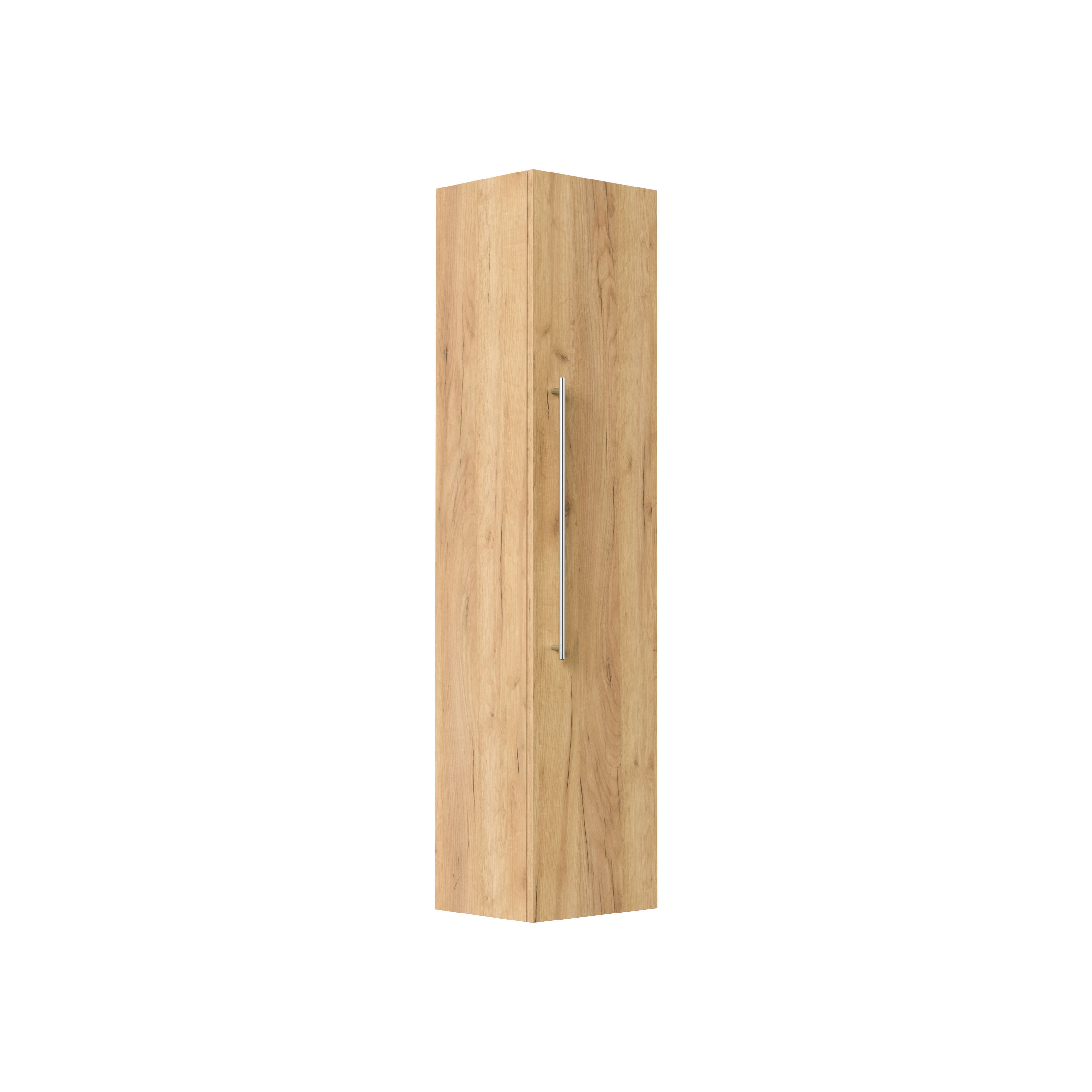 De Badkamerkast Genua Eiken 150 cm brengt een warme en natuurlijke sfeer in je badkamer. Ontworpen in Duitsland en vervaardigd uit hoogwaardig spaanplaat, is deze kast afgewerkt in een realistische eiken Gold-look die voor een authentieke houtuitstraling zorgt. Met soft-close deuren en laden en afmetingen van 35 cm breed, 150 cm hoog en 30 cm diep combineert deze kast praktische functionaliteit met een warme uitstraling.
