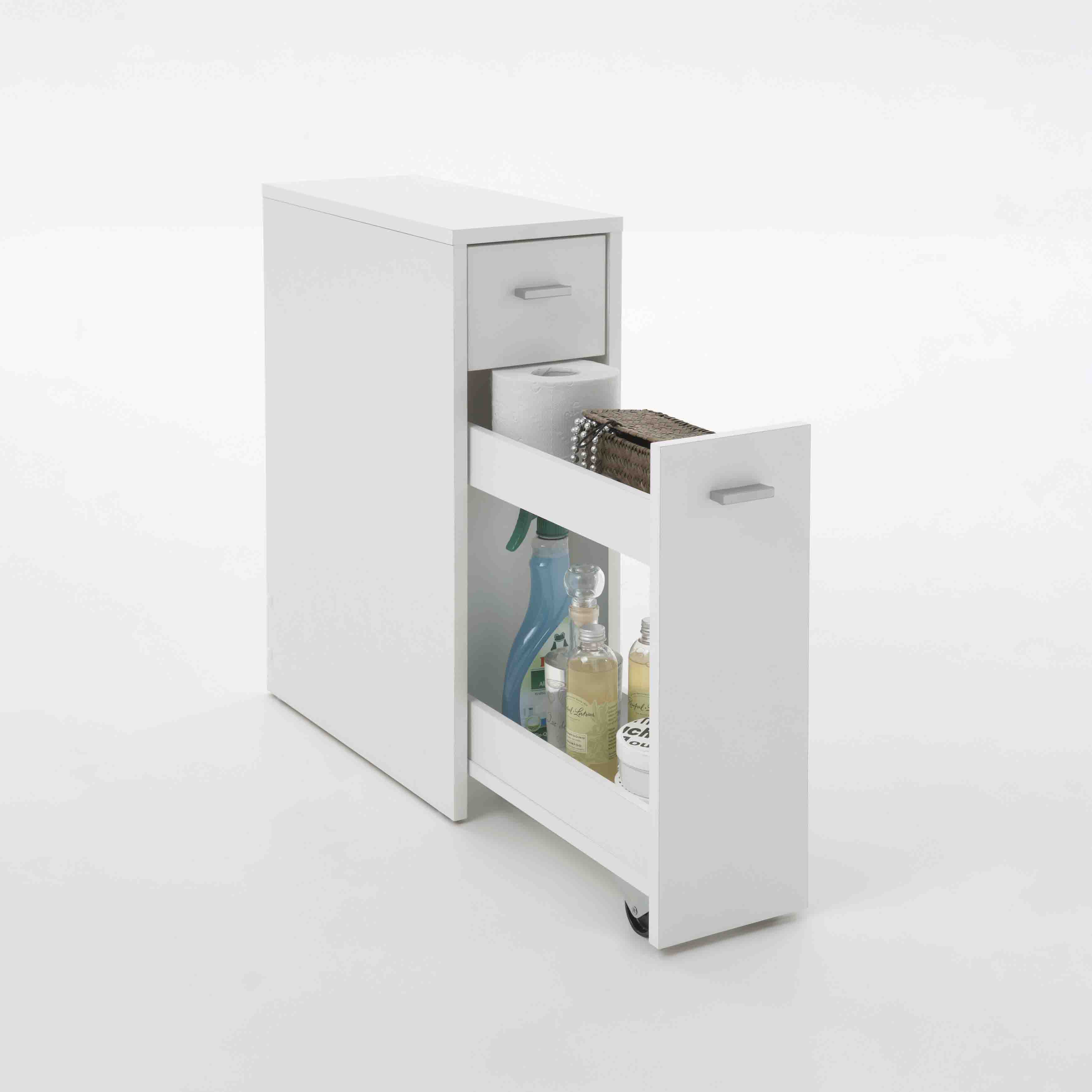 Dit handige badkamerkastje kun je kwijt in elke hoek. De onderste lade heeft voldoende ruimte om bijvoorbeeld flessen shampoo in kwijt te kunnen, daarboven nog een gedeelte voor de kleinere artikelen.
