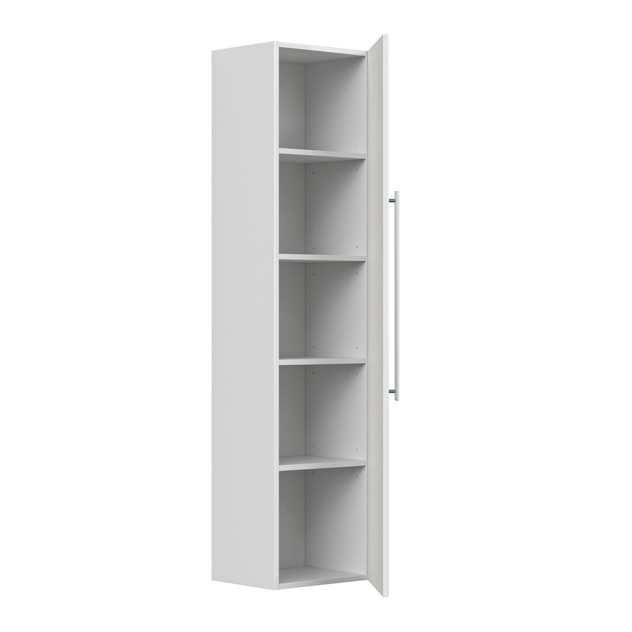 Deze hoge en praktische design opbergkast heeft 5 opbergplanken om spulletjes of handdoeken in op te bergen en kan worden gesloten met een deur met soft-close systeem. Het is mogelijk om de aanslag links of rechts op de deur te monteren. De handgreep is geproduceerd van hoogwaardig RVS en geeft de kast een moderne look. De kast is 35cm breed, 150cm hoog en 30cm diep. De kast kan worden uitgevoerd in hoogglans wit, antraciet, beton of eiken.