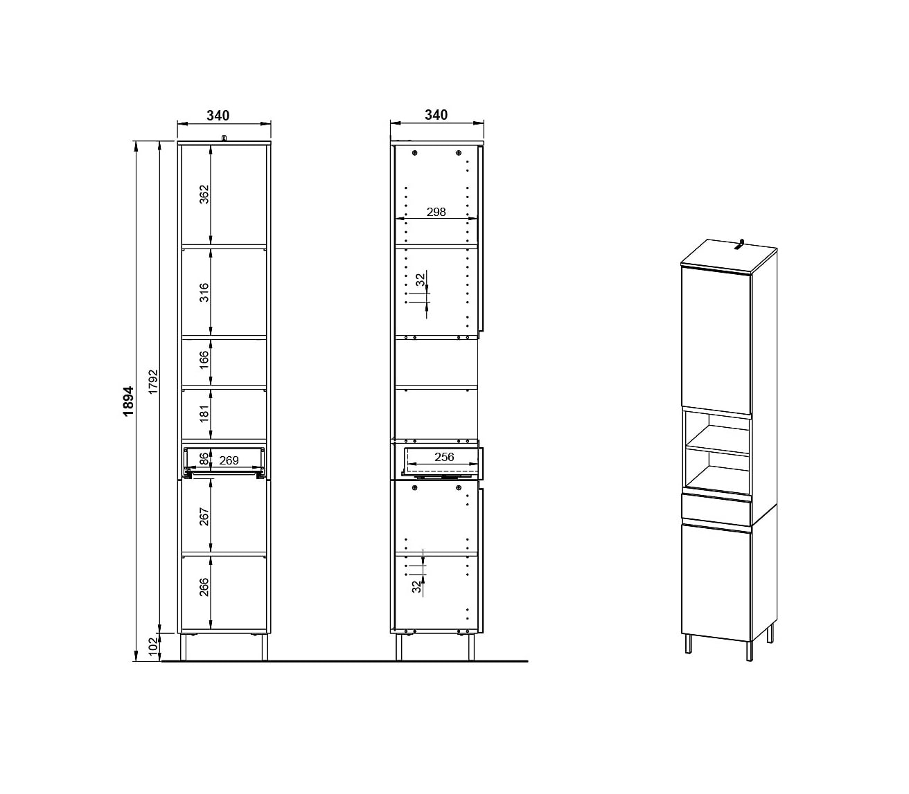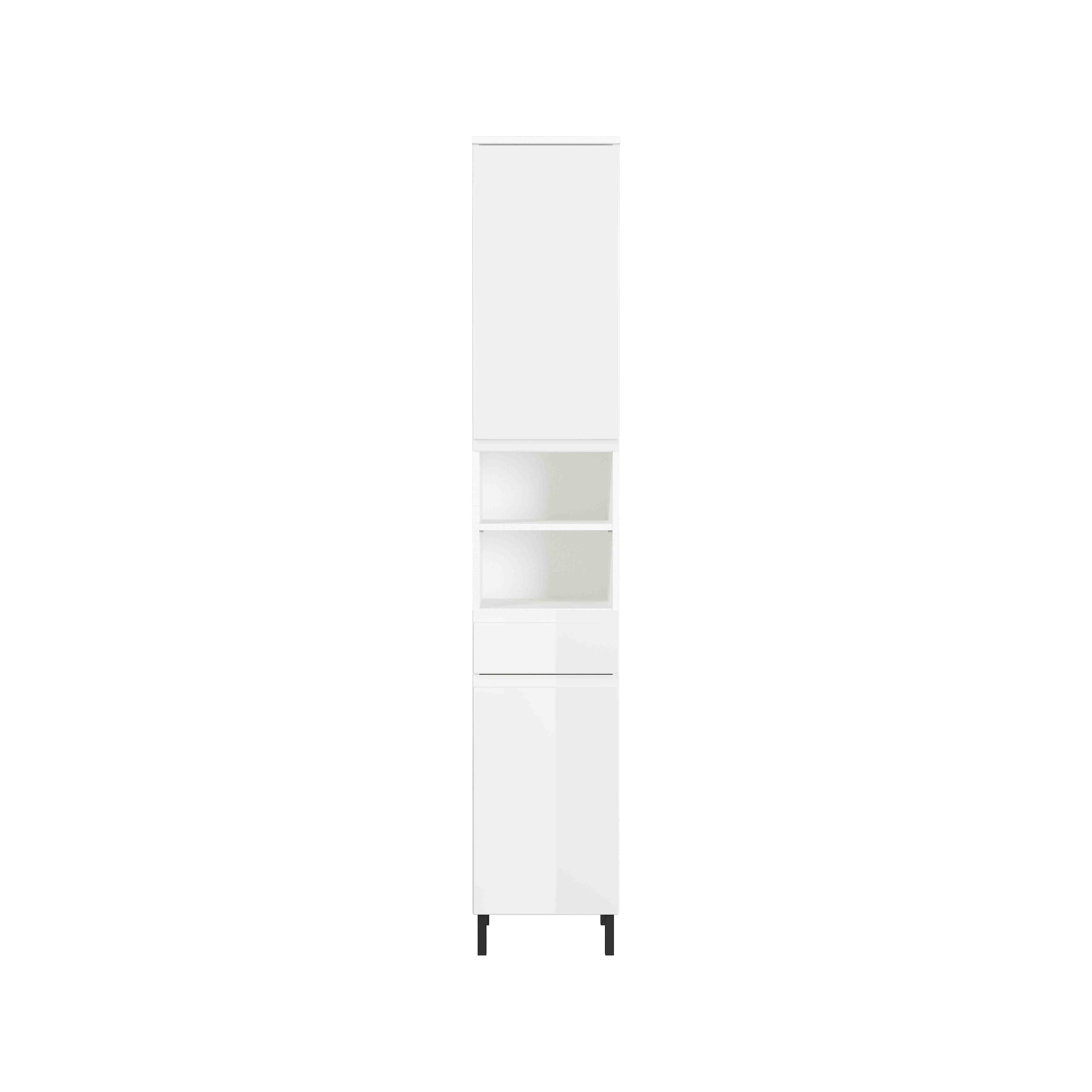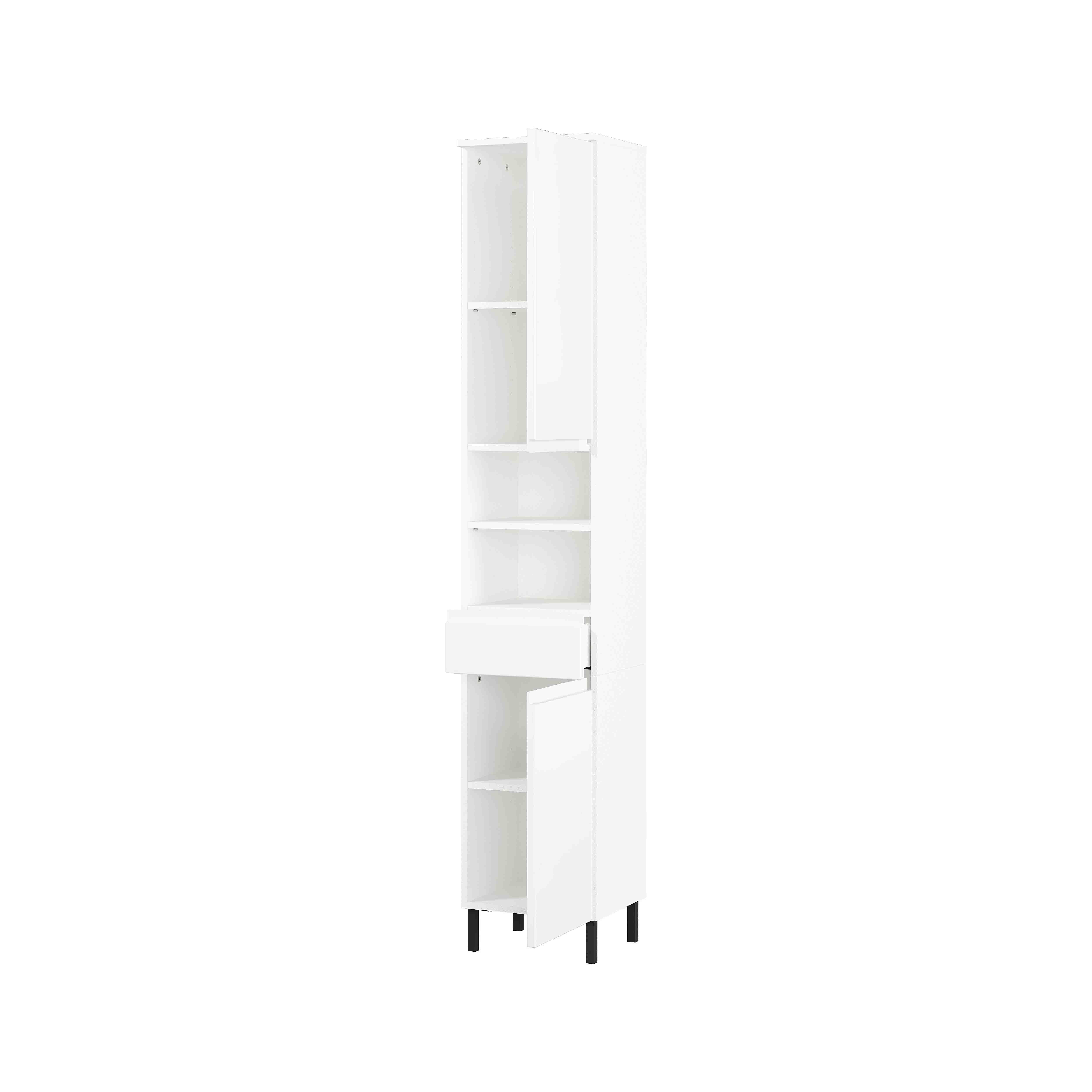 Deze badkamerkolomkast kun je gemakkelijk kwijt door zijn ideale afmetingen van 34 x34 centimeter. Door de hoogte van 190 centimeter ben je echter gegarandeerd voorzien van voldoende opbergruimte, deze is ook nog naar wens in te delen door de verstelbare legplanken. Gepoedercoat metalen pootjes in combinatie met geruisloos sluitende deuren en laden maken dit meubelstuk helemaal af. Geproduceerd in Duitsland, dit staat voor degelijke kwaliteit en een lange levensduur. Gemakkelijk te monteren doormiddel van de meegeleverde montagehandleiding. Bekijk ook de andere elementen uit deze badkamerserie!