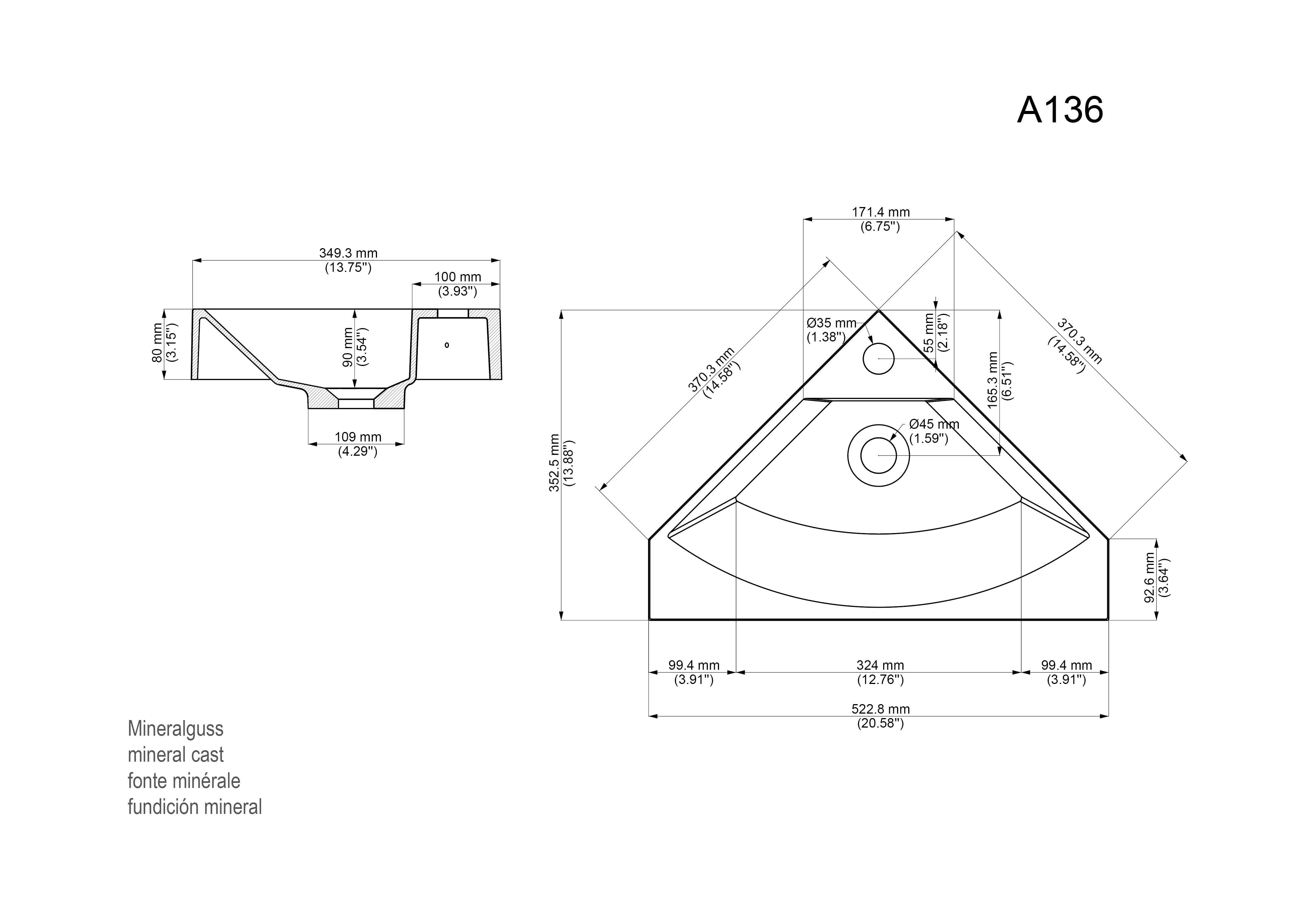 - Keramische wastafel uit gegoten mineraal
