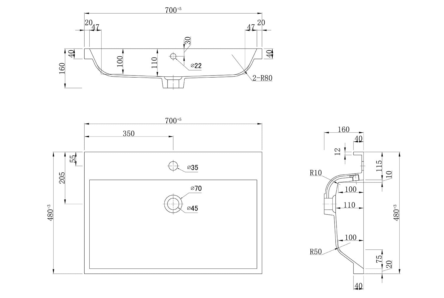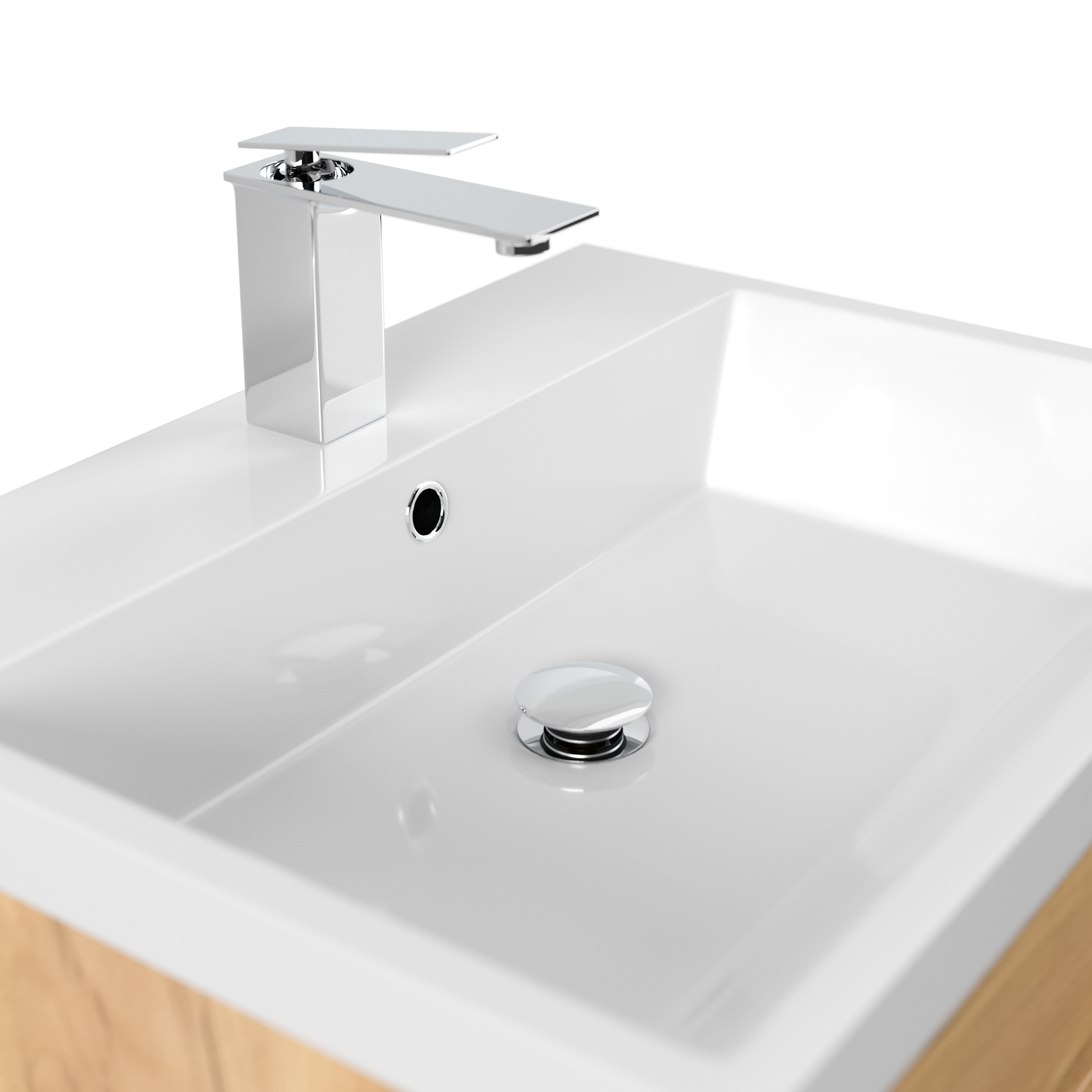 De wastafelkast wordt geleverd exclusief kraan, toevoerleidingen naar de kraan, afvoerplug en zwanenhals.
