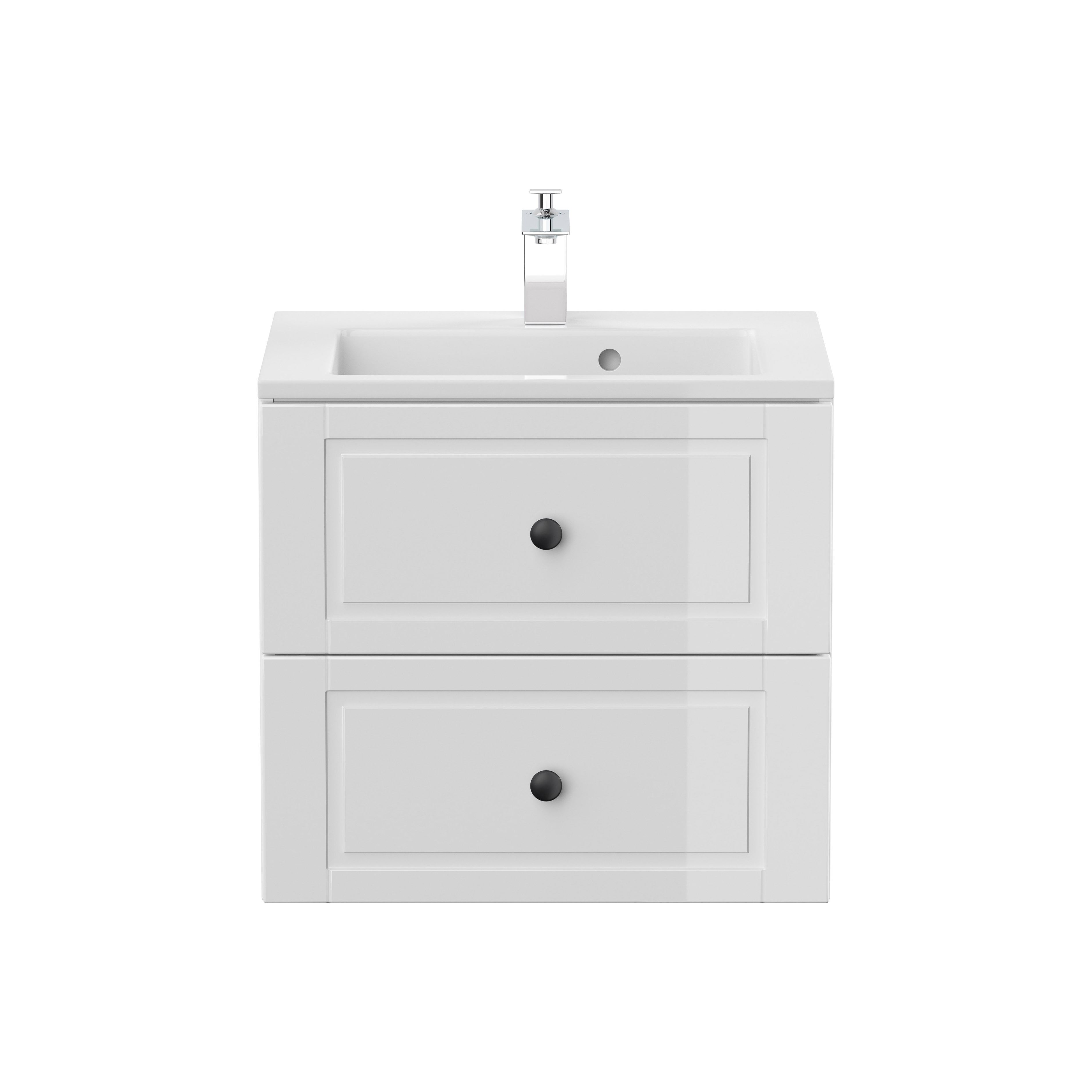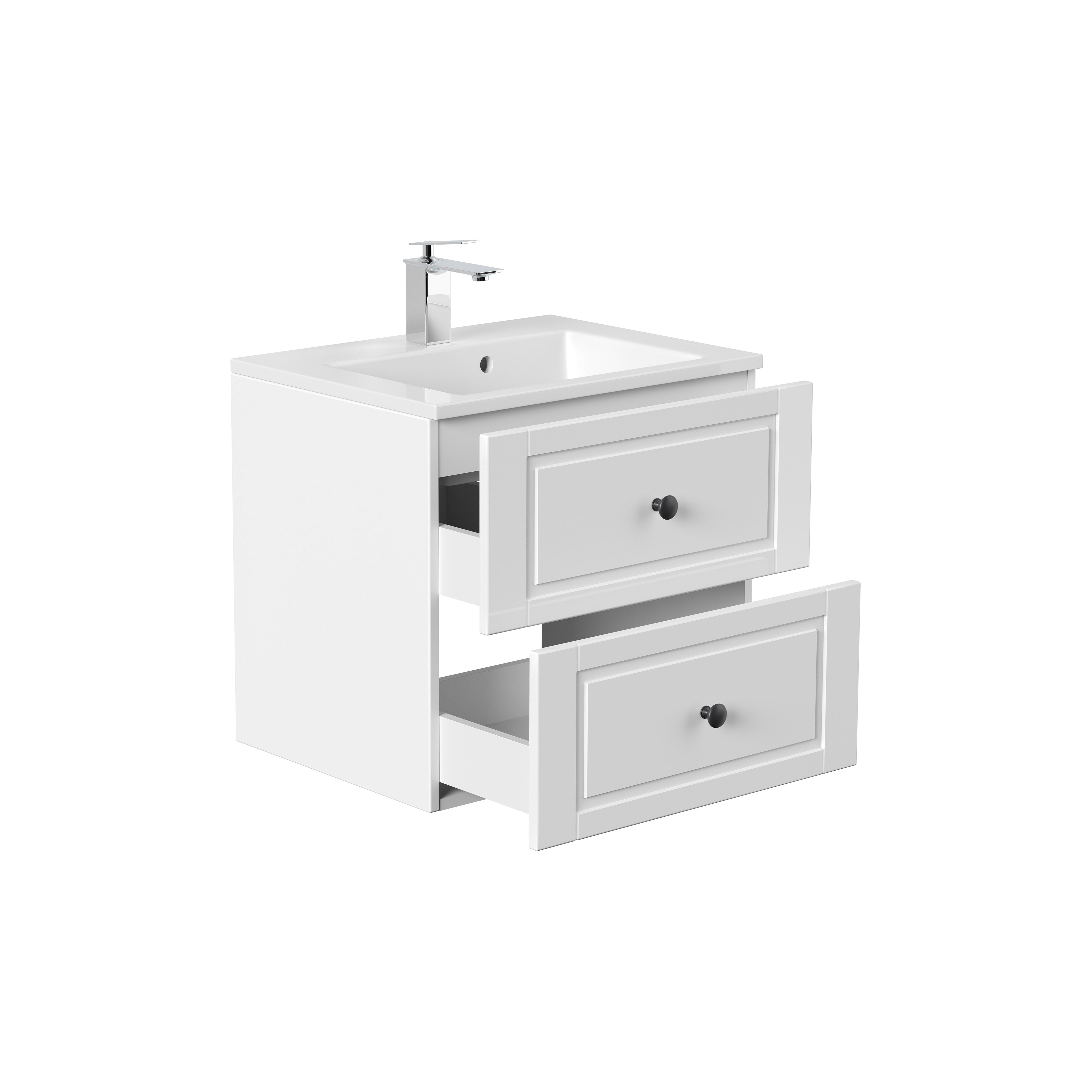 Dit klassieke wastafelmeubel vindt gemakkelijk zijn weg in elk interieur. Voldoende opbergruimte voor al je badkamer benodigdheden. Laden sluiten geruisloos dankzij het soft-close systeem. De panelen van de meubels zijn vervaardigd uit een stevig spaanplaat-materiaal en afgewerkt met een sterke hoogglans melamine, hierdoor is deze kast gemakkelijk schoon te houden en langer beschermd tegen stof, vuil en krassen. De wastafelkast wordt geleverd exclusief kraan, toevoerleidingen naar de kraan, afvoerplug en zwanenhals.