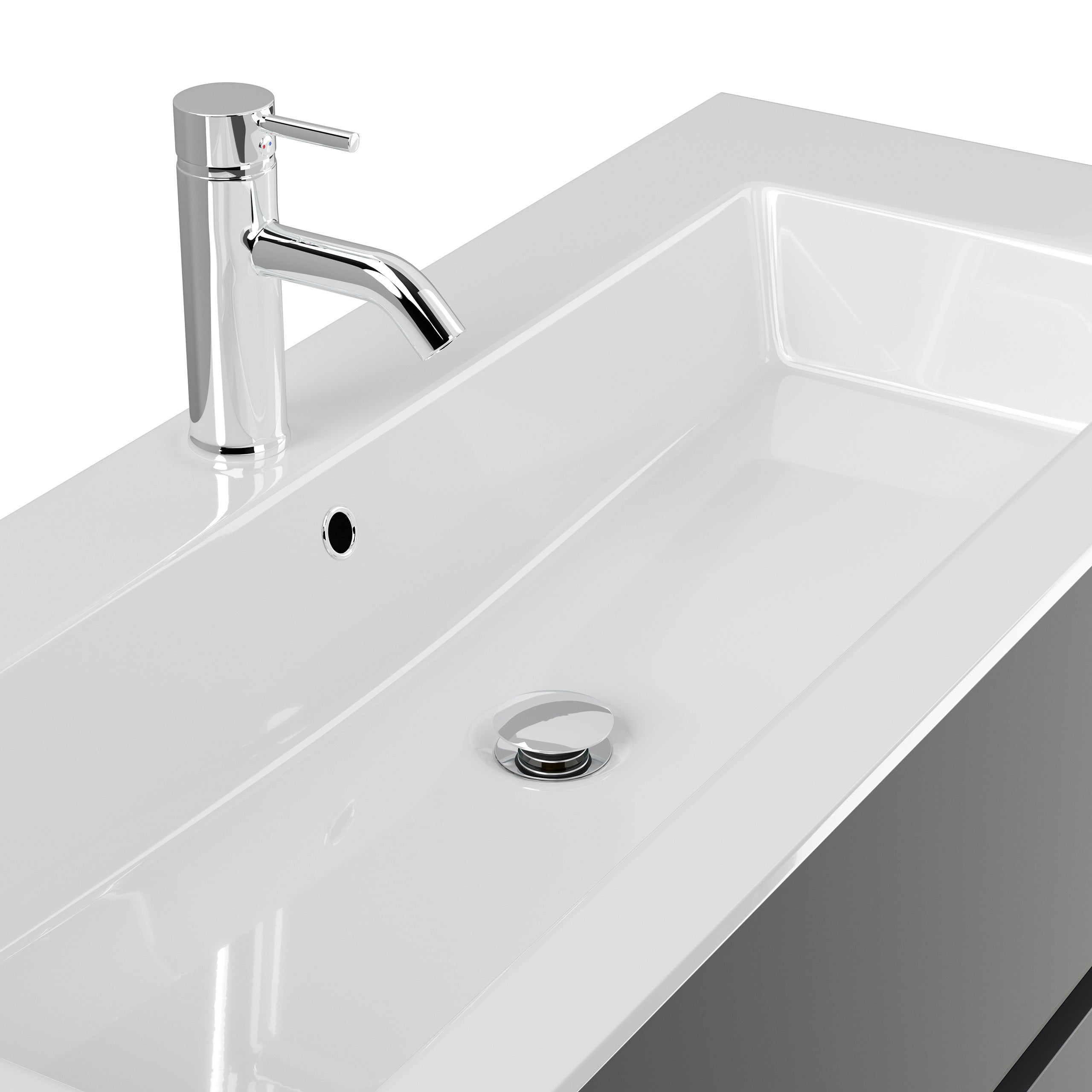 De wastafelkast wordt geleverd exclusief kraan, toevoerleidingen naar de kraan, afvoerplug en zwanenhals.