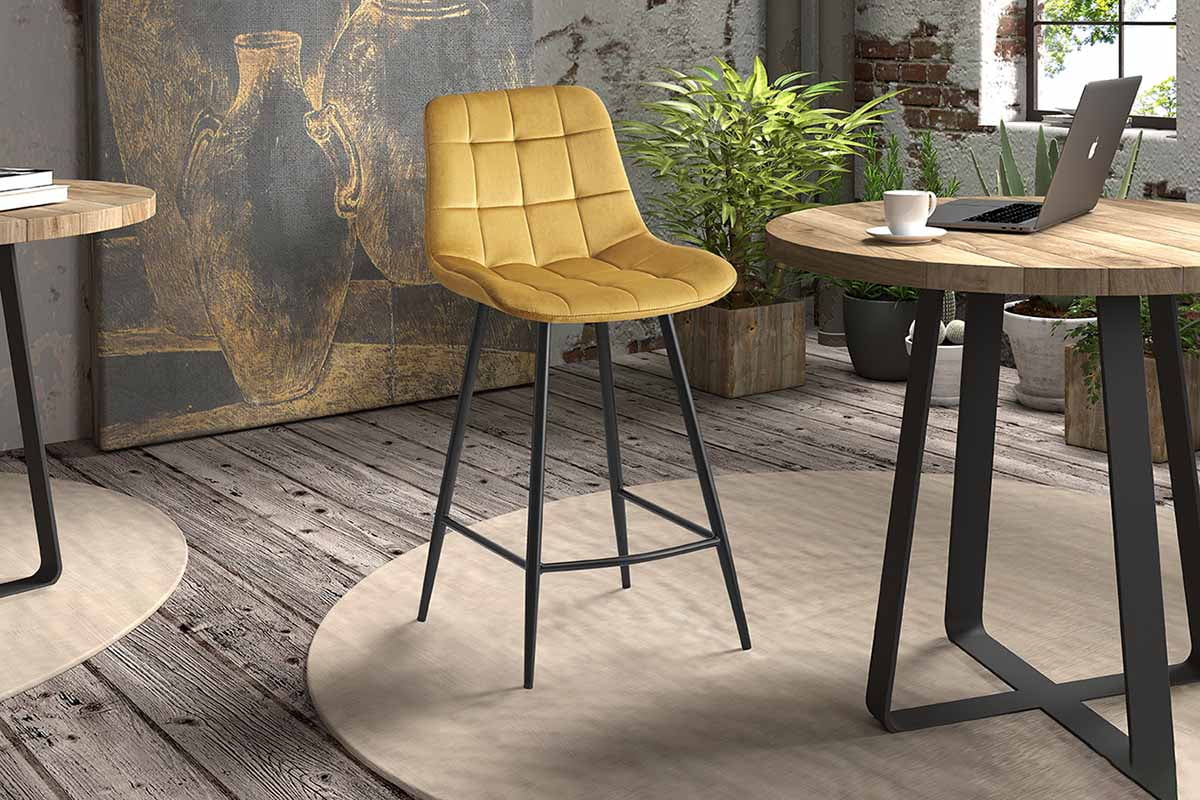 Deze hippe barkruk is afgewerkt met een fluwelen bekleding en heeft een metalen onderstel. De barkruk heeft een zithoogte van 65 cm en een zitdiepte van 36 cm. Verkrijgbaar in meerdere kleuren.
