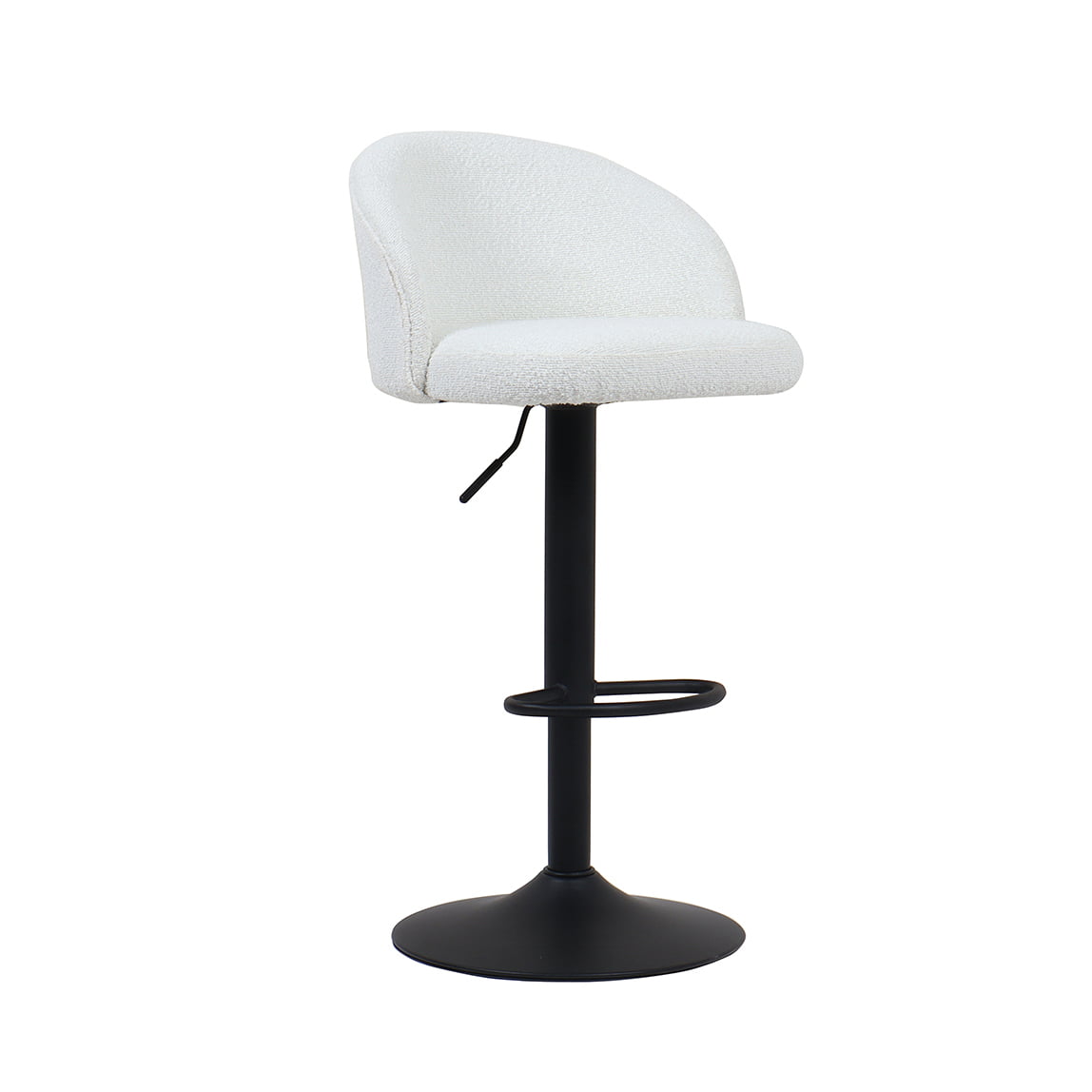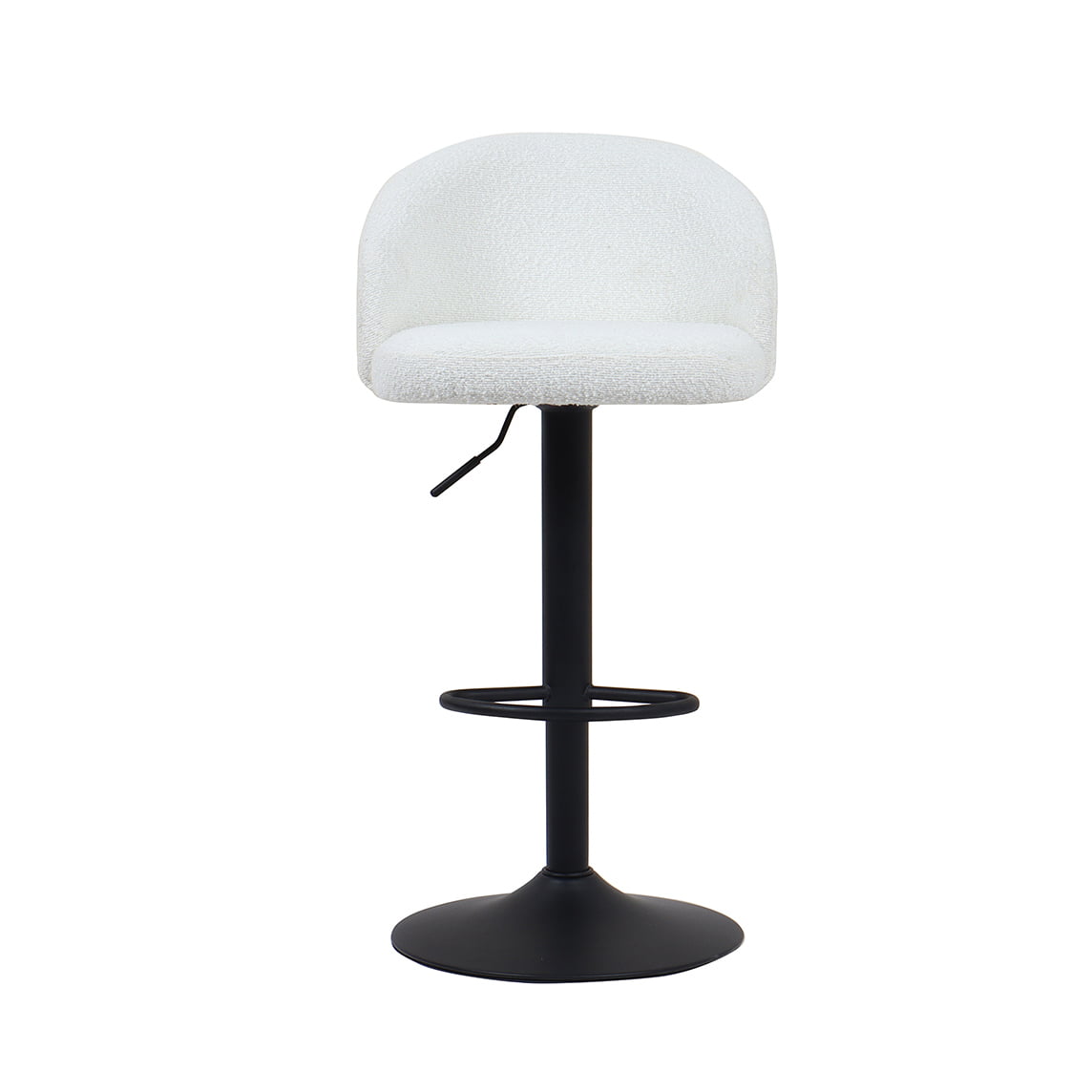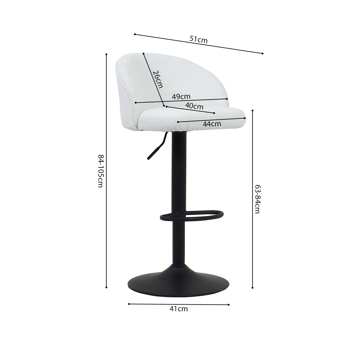 Deze set van twee witte Babet barkrukken voegt stijl en comfort toe aan je keuken of bar. Met hun moderne Bouclé bekleding en in hoogte verstelbare ontwerp, zijn ze perfect voor elke gelegenheid. De minimale zithoogte is 63 cm en de maximale zithoogte is 84 cm, waardoor je ze kunt aanpassen aan jouw keukeneiland of bartafel. De zitdiepte is royaal, met 46 cm ruimte om comfortabel te zitten.