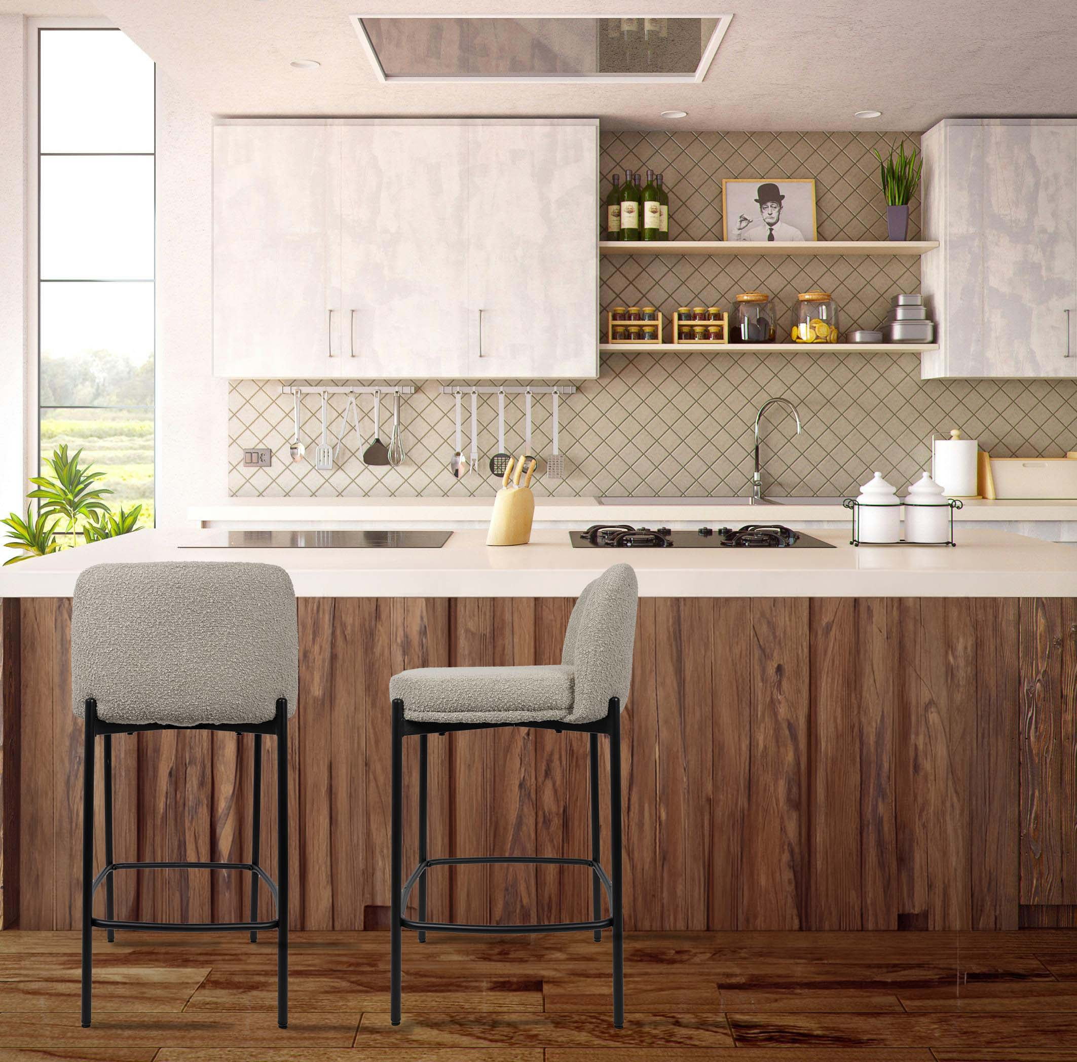 Op zoek naar comfortabele en trendy barkrukken voor je keuken of eetruimte? Dan zijn deze zandkleurige Lylou barkrukken precies wat je zoekt. Met hun vaste zithoogte van 65 cm zijn ze perfect geschikt voor keukenbladen, die meestal een hoogte hebben tussen de 85 cm en 95 cm. Dit maakt ze ideaal voor gebruik aan een keukeneiland of aanrecht.