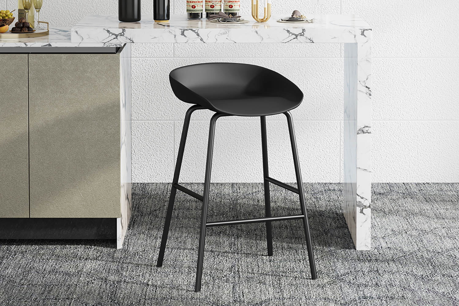 Deze praktische en betaalbare barkruk heeft metalen poten en een kunststoffen zitting. Deze barkruk heeft een zithoogte van 67 cm en een zitdiepte van 34 cm en is verkrijgbaar in verschillende kleuren.