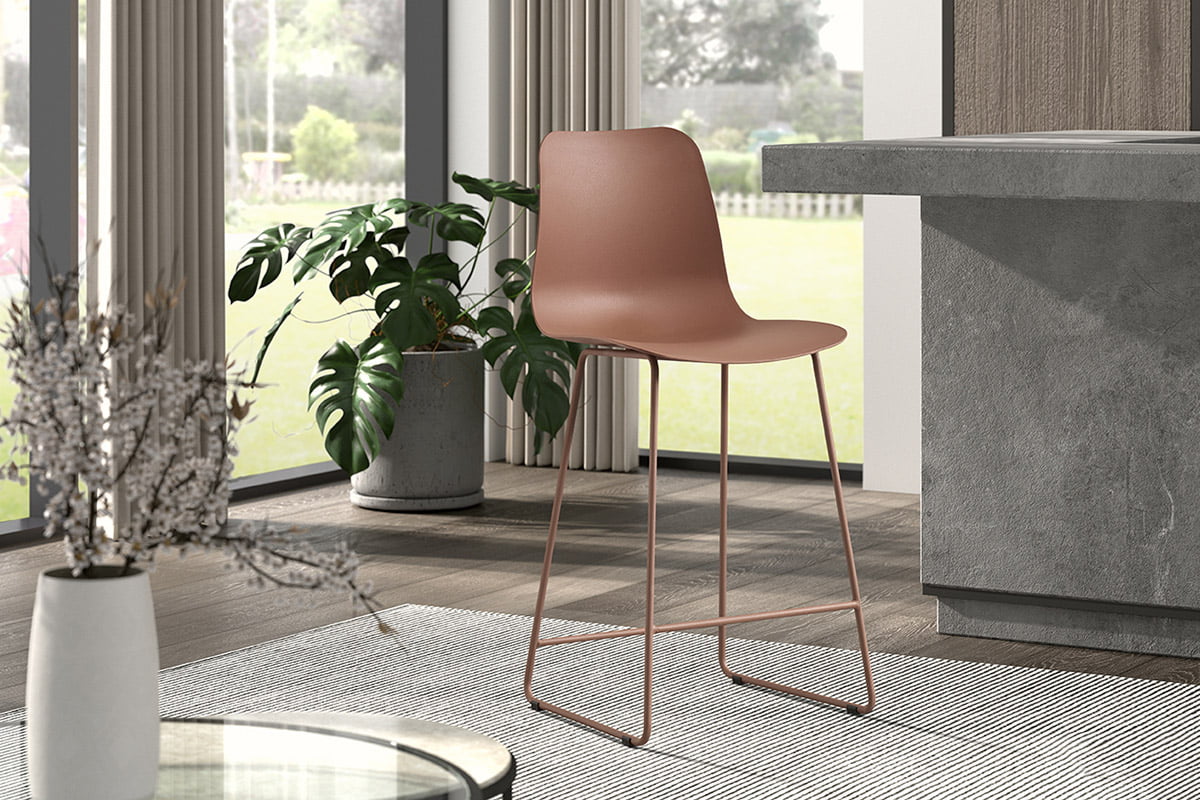 Deze barkruk is door zijn zithoogte van 65 centimeter bij uitstek geschikt voor het gebruik aan een kookeiland. De barkruk heeft een zitdiepte van 42 centimeter en zit door zijn voorgevormde kuip als gegoten. De kunststof zitting is gemakkelijk schoon te houden.