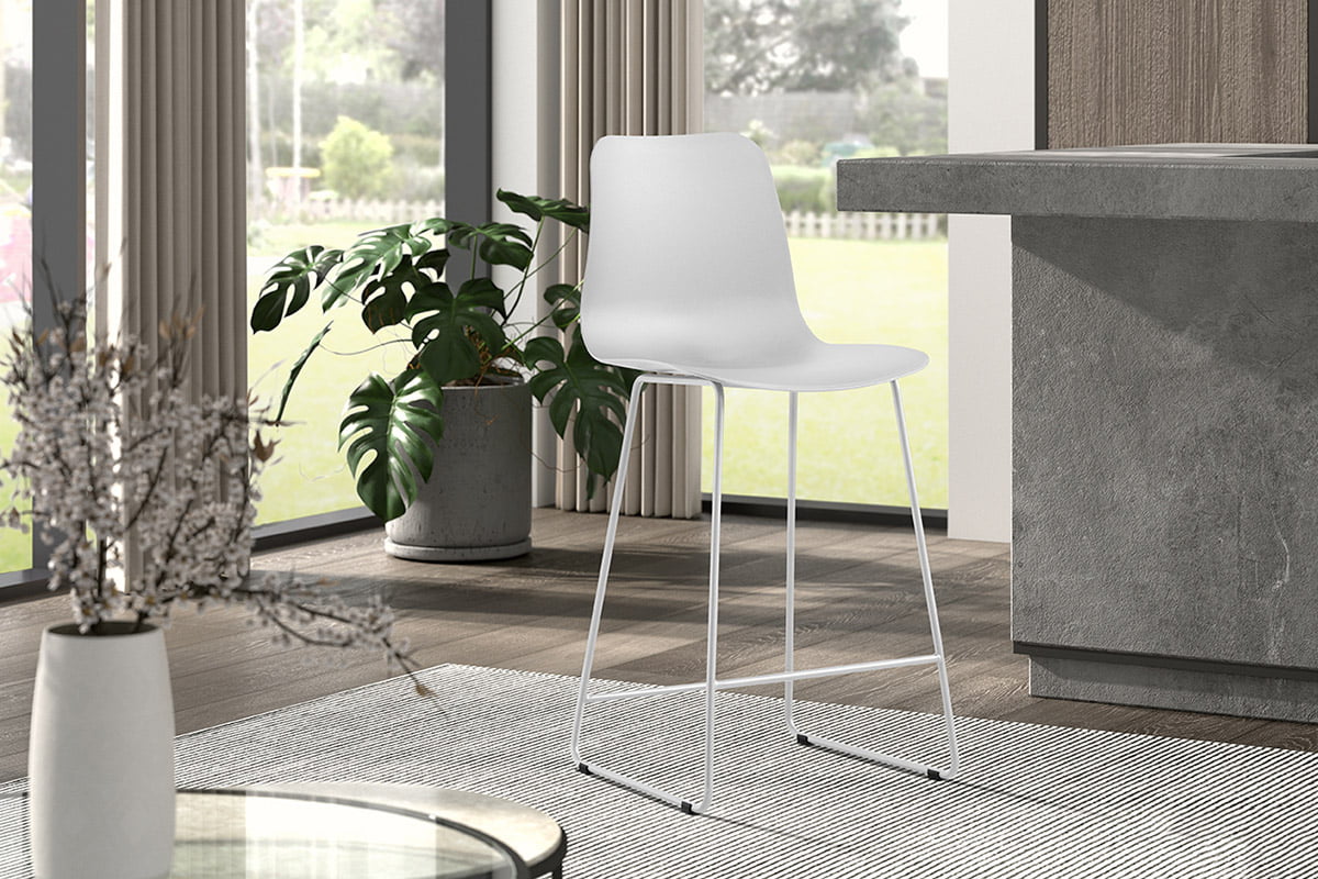 Deze barkruk is door zijn zithoogte van 65 centimeter bij uitstek geschikt voor het gebruik aan een kookeiland. De barkruk heeft een zitdiepte van 42 centimeter en zit door zijn voorgevormde kuip als gegoten. De kunststof zitting is gemakkelijk schoon te houden.