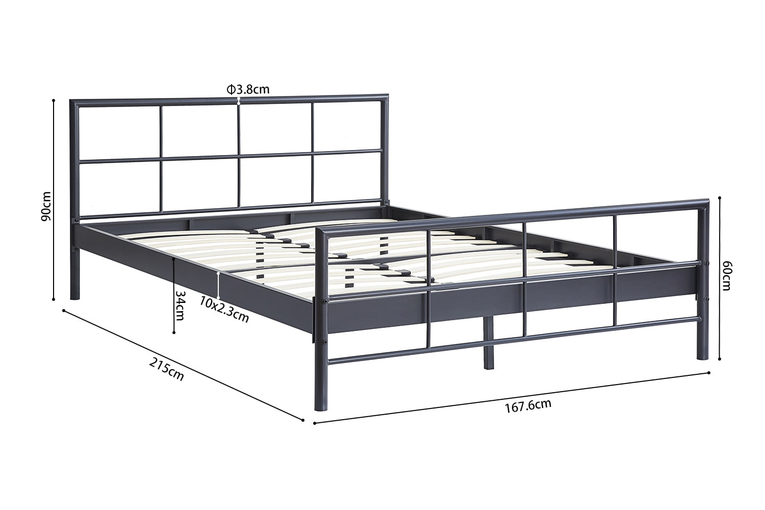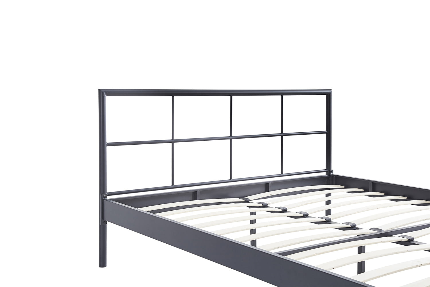 Het donkergrijze metalen frame geeft het bed een moderne uitstraling en past perfect bij diverse interieurstijlen. Bovendien staat het frame garant voor duurzaamheid en stabiliteit, zodat je jarenlang kunt genieten van een goede nachtrust.