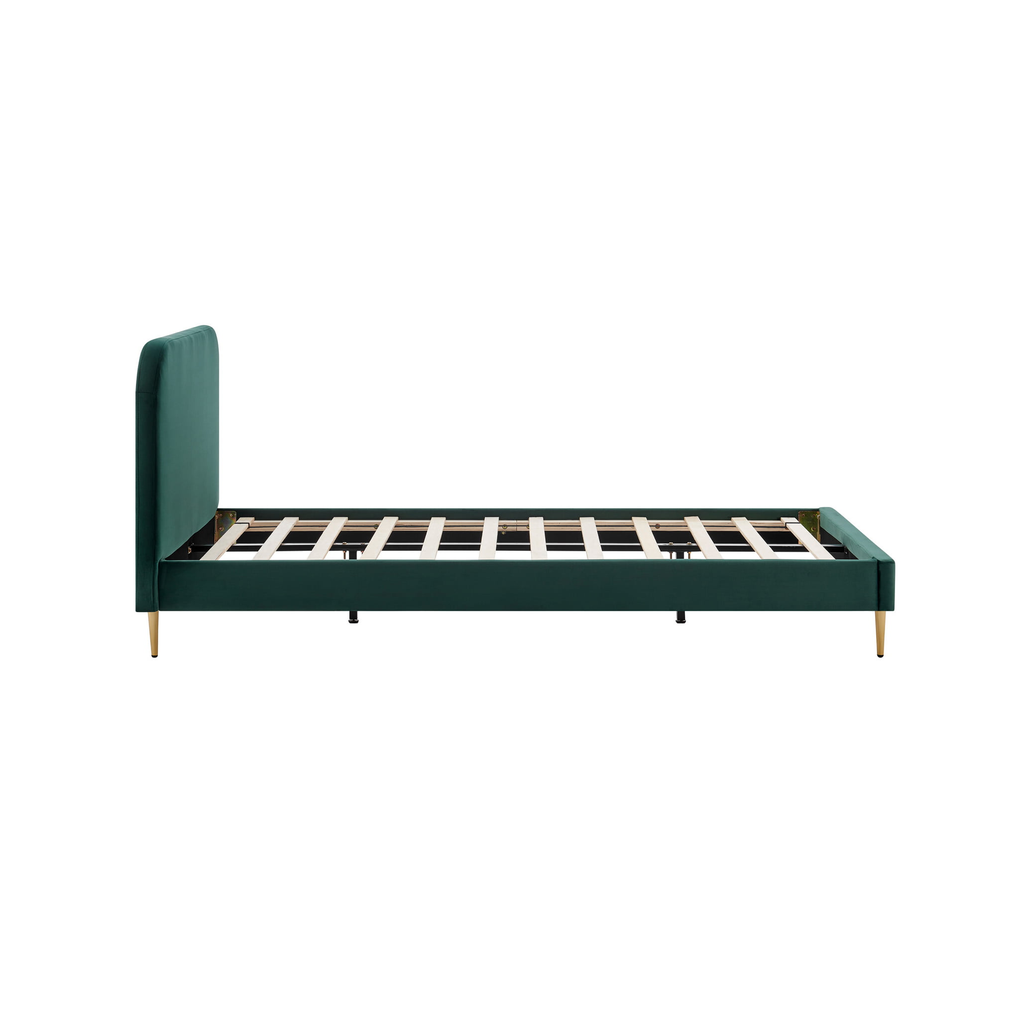 Dit gestoffeerde bed is een aanwinst voor in de slaapkamer. Het bed is bekleed met sterke en slijtvaste fluwelen stof, deze kenmerkt zich door zijn zachtheid. De goudkleurige metalen poten maken dit bed helemaal af. De onderkant van het bed bevindt zich 15 centimeter van de grond, de bovenkant van het bed bevindt zich 29,5 centimeter van de grond. De hoogte van het hoofdeind is 91 centimeter. Wordt geleverd inclusief lattenbodem. Gemakkelijk te monteren doormiddel van bijgeleverde montagehandleiding. Verkrijgbaar in verschillende maten kleuren.