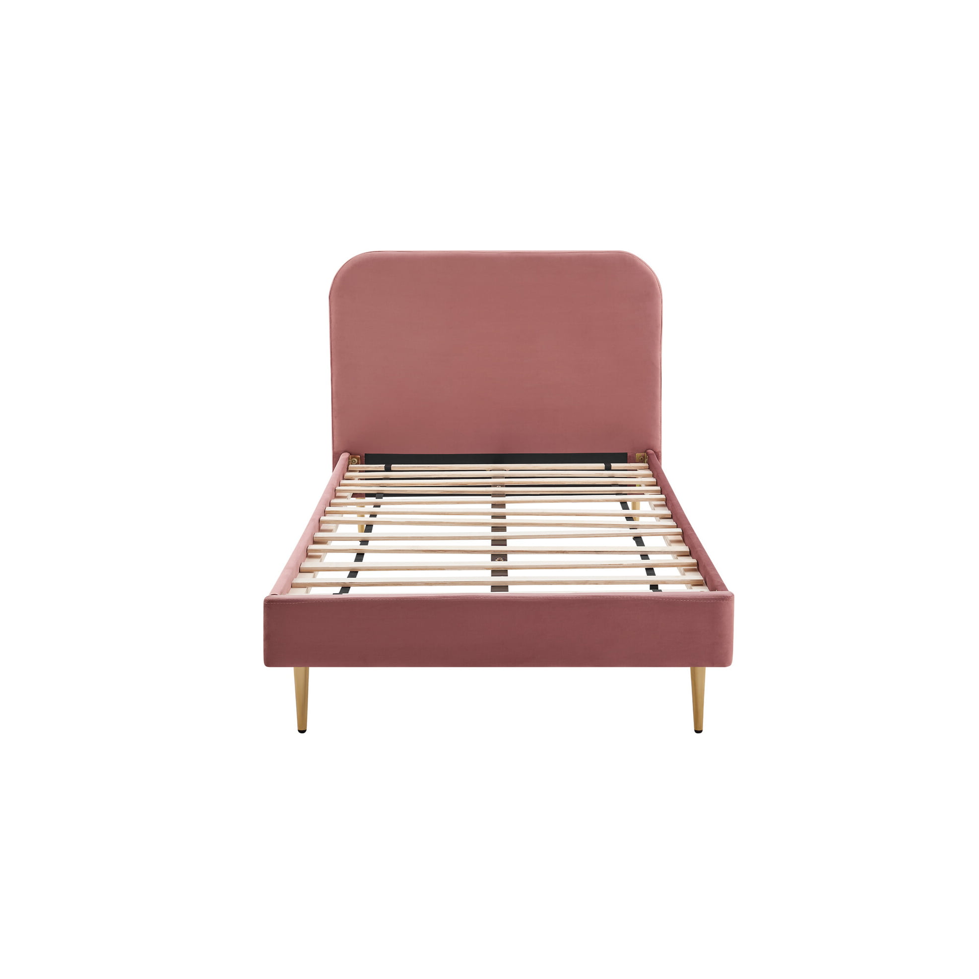 Dit gestoffeerde bed is een aanwinst voor in de slaapkamer. Het bed is bekleed met sterke en slijtvaste fluwelen stof, deze kenmerkt zich door zijn zachtheid. De goudkleurige metalen poten maken dit bed helemaal af. De onderkant van het bed bevindt zich 15 centimeter van de grond, de bovenkant van het bed bevindt zich 29,5 centimeter van de grond. De hoogte van het hoofdeind is 91 centimeter. Wordt geleverd inclusief lattenbodem. Gemakkelijk te monteren doormiddel van bijgeleverde montagehandleiding. Verkrijgbaar in verschillende maten kleuren.