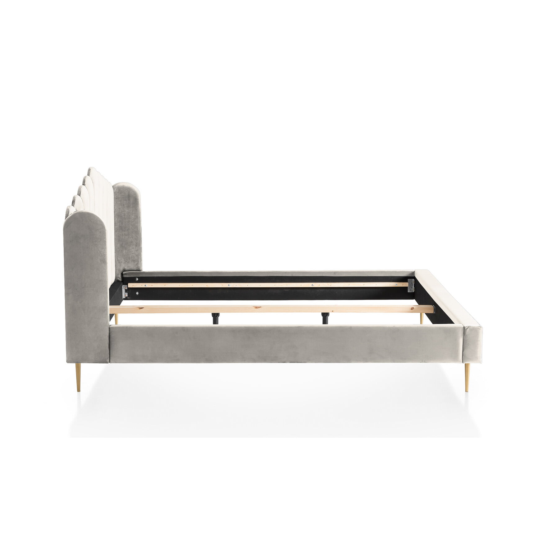 Dit degelijke bed is gemaakt van MDF en heeft een fluwelen afwerking. Het bed wordt geleverd exclusief matras en lattenbodem. De instaphoogte van het bed is ongeveer 39 centimeter. Het hoofdbord is 115 centimeter hoog en 5 centimeter dik. Zijn goudgelakte poten maken dit bed helemaal af! Verkrijgbaar in verschillende kleuren en afmetingen.