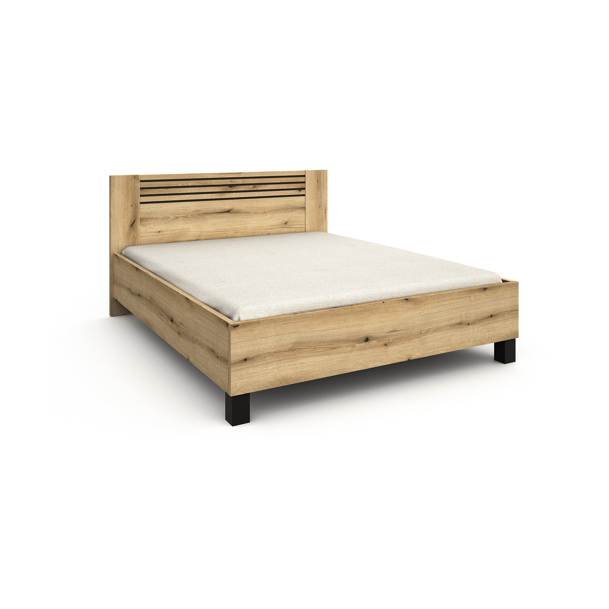 Het Mekong bed in eiken (160×200 cm) combineert een ruim slaapoppervlak met een tijdloos design. Het stevige hoofdbord biedt extra ondersteuning, ideaal om comfortabel te lezen of ontspannen. Het duurzame spaanplaat en de melamine-afwerking zorgen voor een bed dat zowel stijlvol als onderhoudsvriendelijk is.