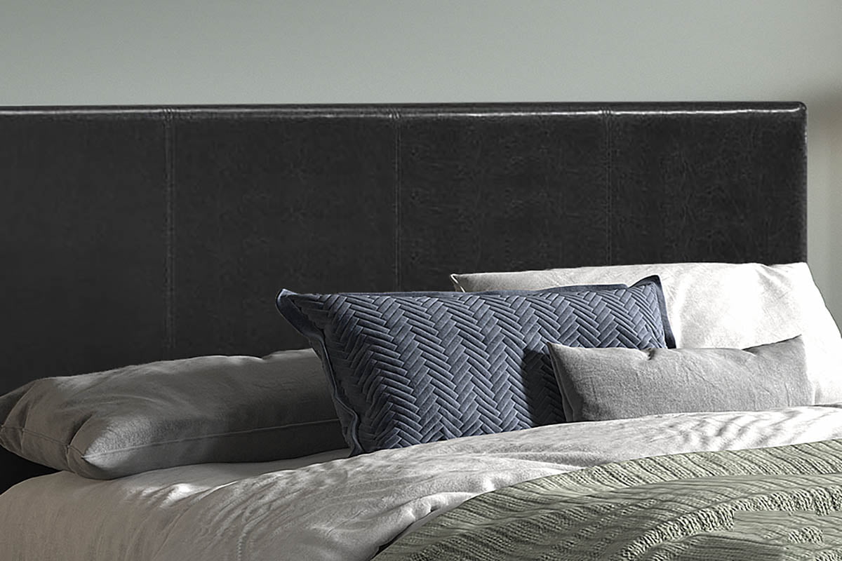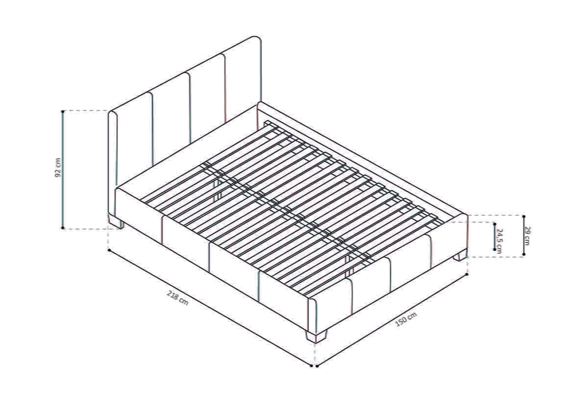 Tweepersoonsbed met kunstlederen bekleding, het frame is vervaardigd uit een combinatie van MDF en spaanplaat. Het bed wordt geleverd inclusief lattenbodem.