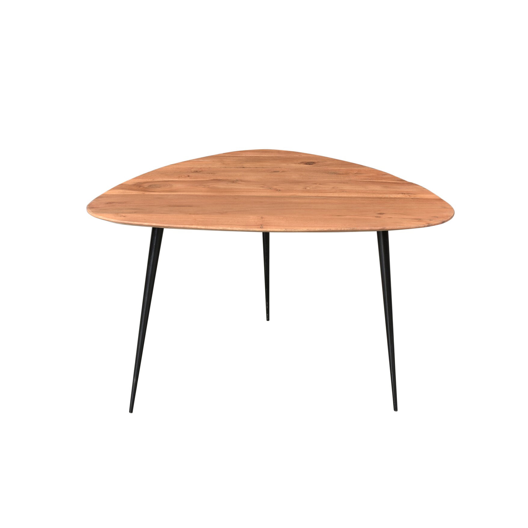Deze veelzijdige bijzettafel combineert een natuurlijk acaciahouten blad met een stevig metalen onderstel. De drie poten geven een speelse uitstraling, terwijl de afgeronde hoeken zorgen voor een subtiele afwerking. Ideaal naast een fauteuil, als nachtkastje of in combinatie met andere tafels uit de Kasai-serie.