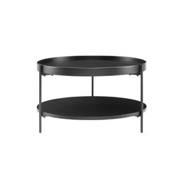Deze moderne bijzettafel in zwart heeft een strak design met twee niveaus voor extra opbergruimte. Ideaal voor elke ruimte.