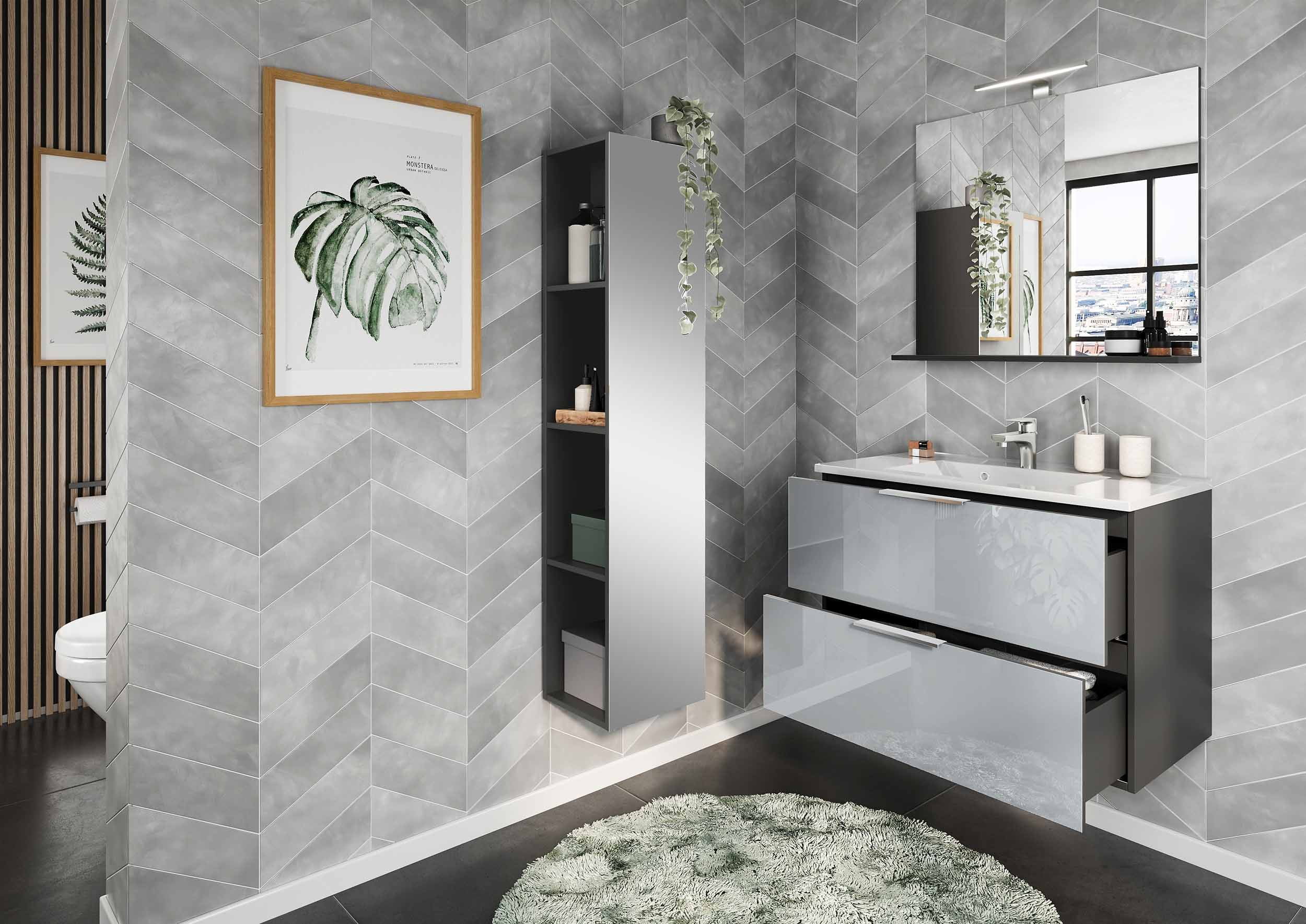 Badkamer Kolomkast Philip Grafiet-Zilver 93 cm