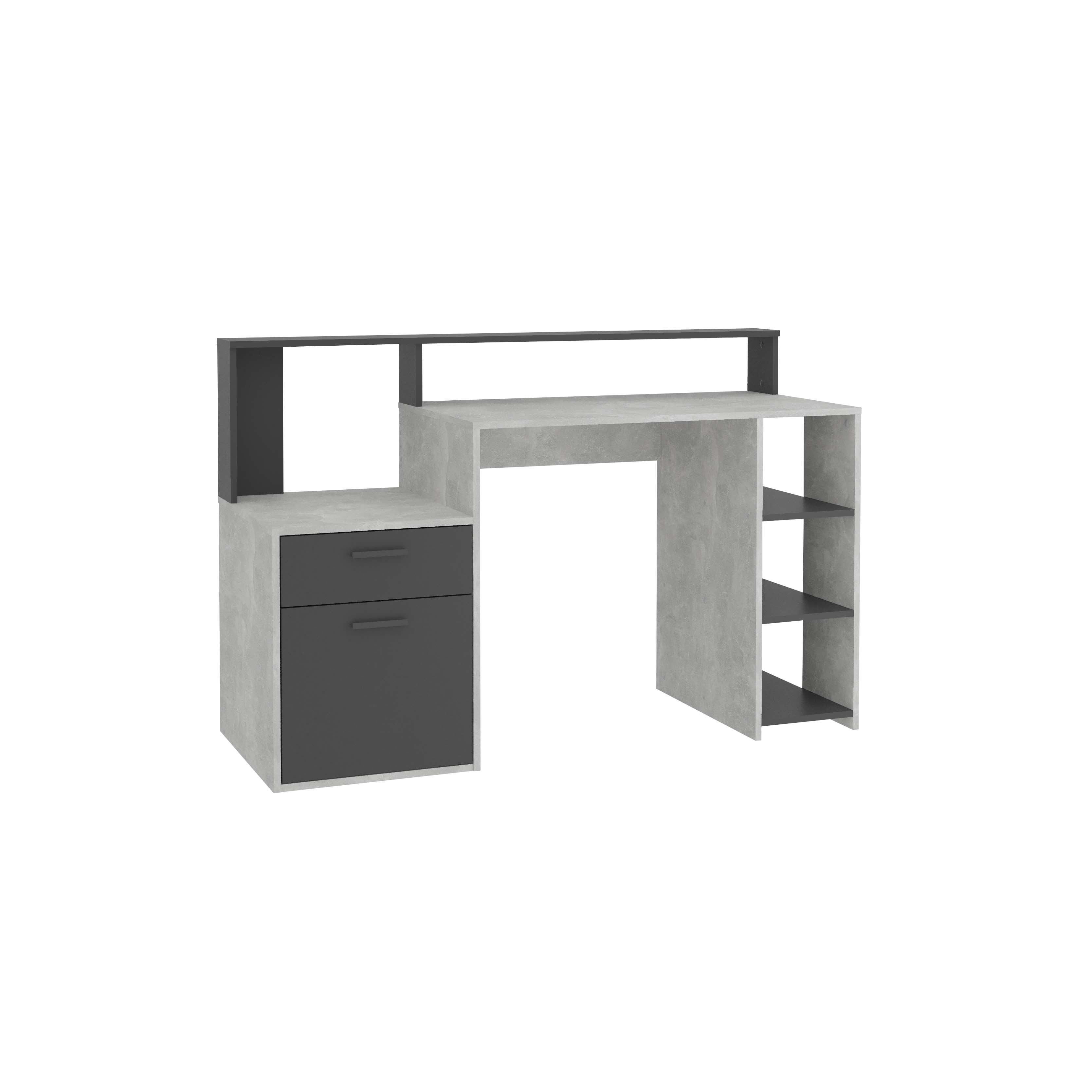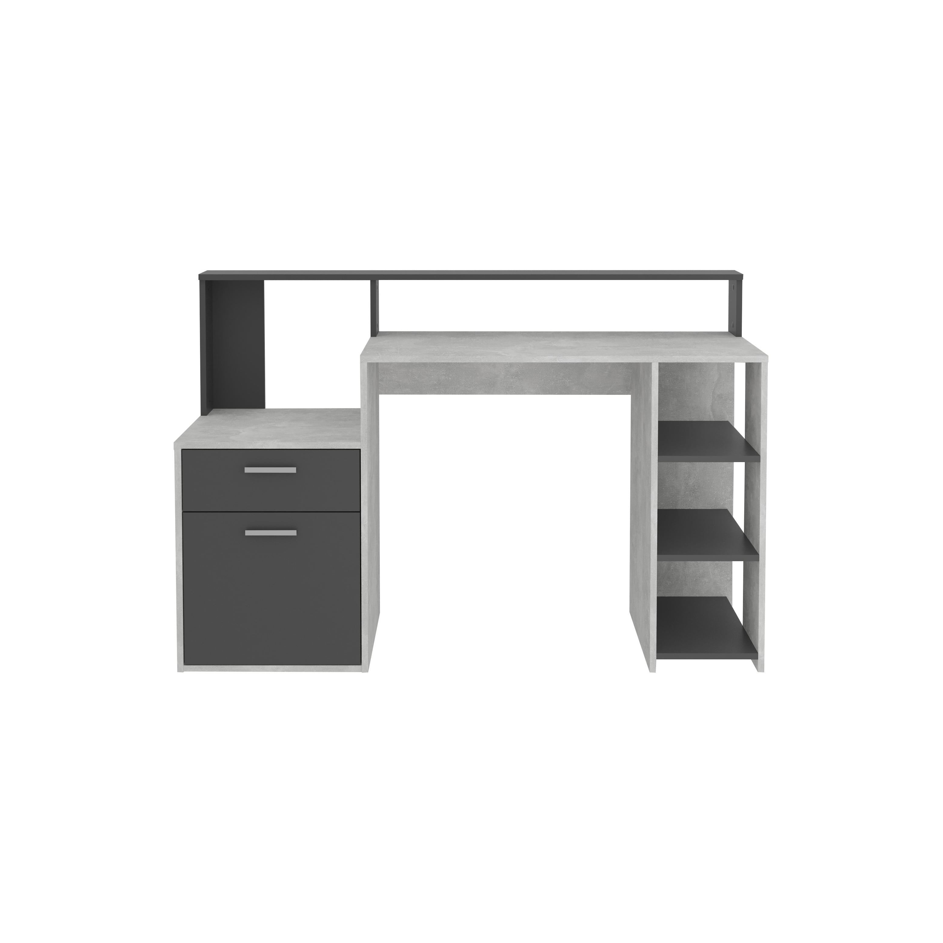Het bureau Eros in beton antraciet combineert een robuuste industriële uitstraling met praktische functionaliteit. Dankzij het ruime werkblad en de stevige constructie is dit bureau ideaal voor thuiswerken of studeren. Het betonlook blad en het antraciete onderstel zorgen voor een stoere uitstraling.