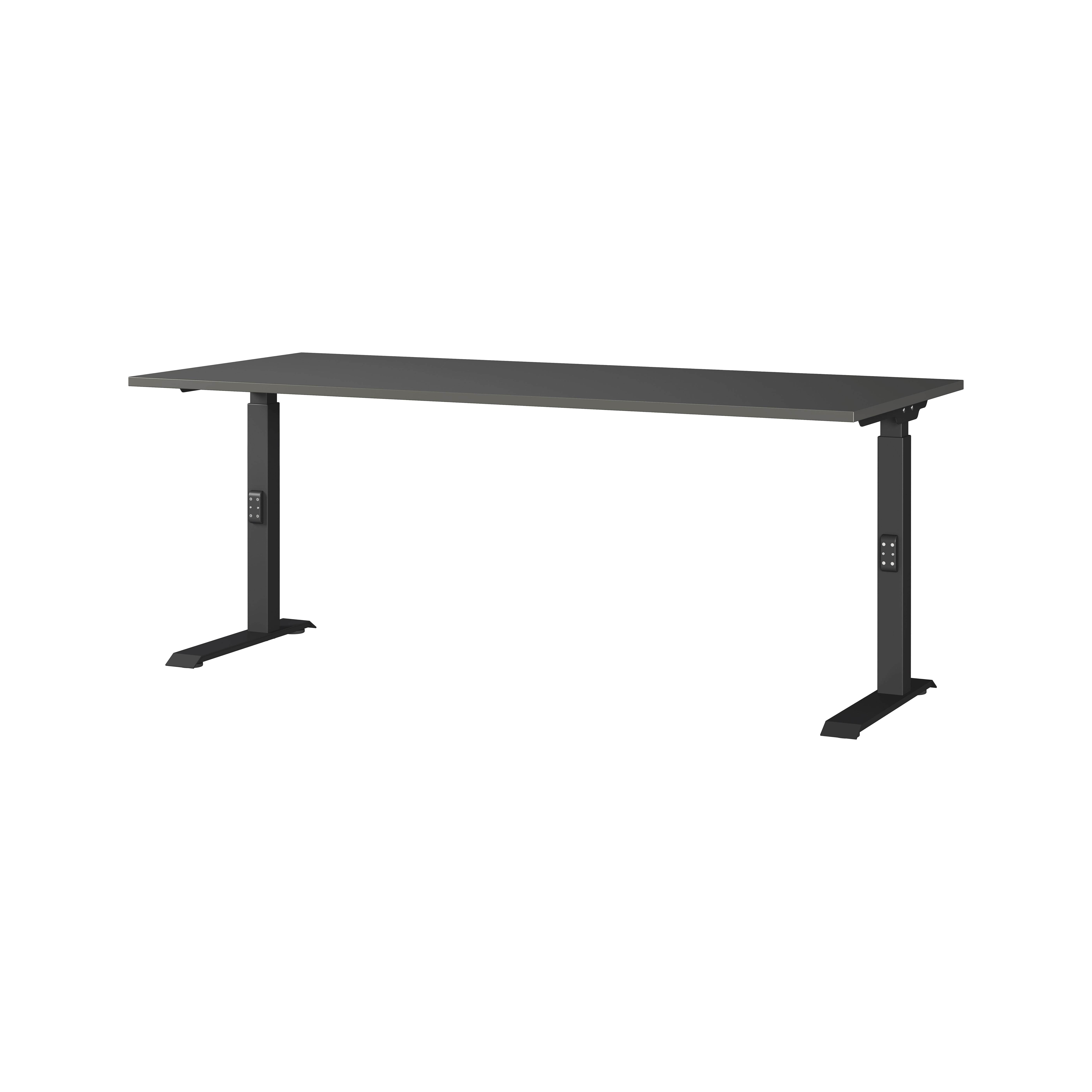 Maak kennis met het Bureau Galileo Grafiet 180 cm, een mechanisch in hoogte verstelbaar bureau met twee C-poten. Het tafelblad, met een draagvermogen tot 80 kg, is uitgevoerd in de elegante grafietkleur, terwijl het frame is vervaardigd van poedergecoat metaal in het zwart.