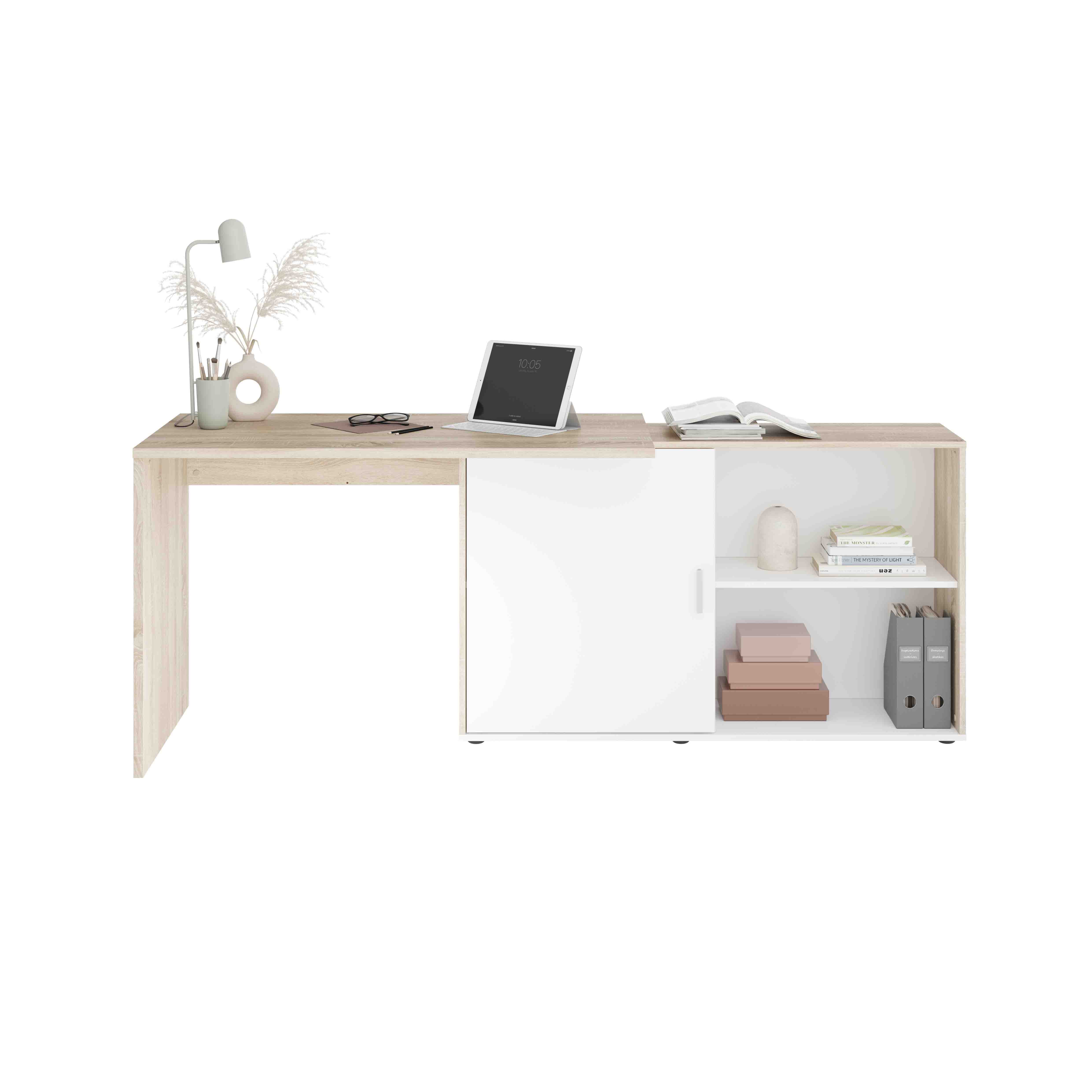 Het bureau kan in 4 verschillende opstellingen opgebouwd worden, is vervaardigd uit een stevige spaanplaat en afgewerkt met een sterke melamine. Door zijn speelse opstelling is dit bureau goed te plaatsen in zowel de woonkamer, slaapkamer als studeerkamer. Gemakkelijk te monteren door middel van de bijgeleverde montagehandleiding. Elk vak is voorzien van 1 verstelbare legplank, het schuifpaneel kun je naar links of rechts verplaatsen. In de bureaukast is voldoende opbergruimte voor bijvoorbeeld mappen, boeken en andere kantoorartikelen. Verkrijgbaar in meerdere kleuren.