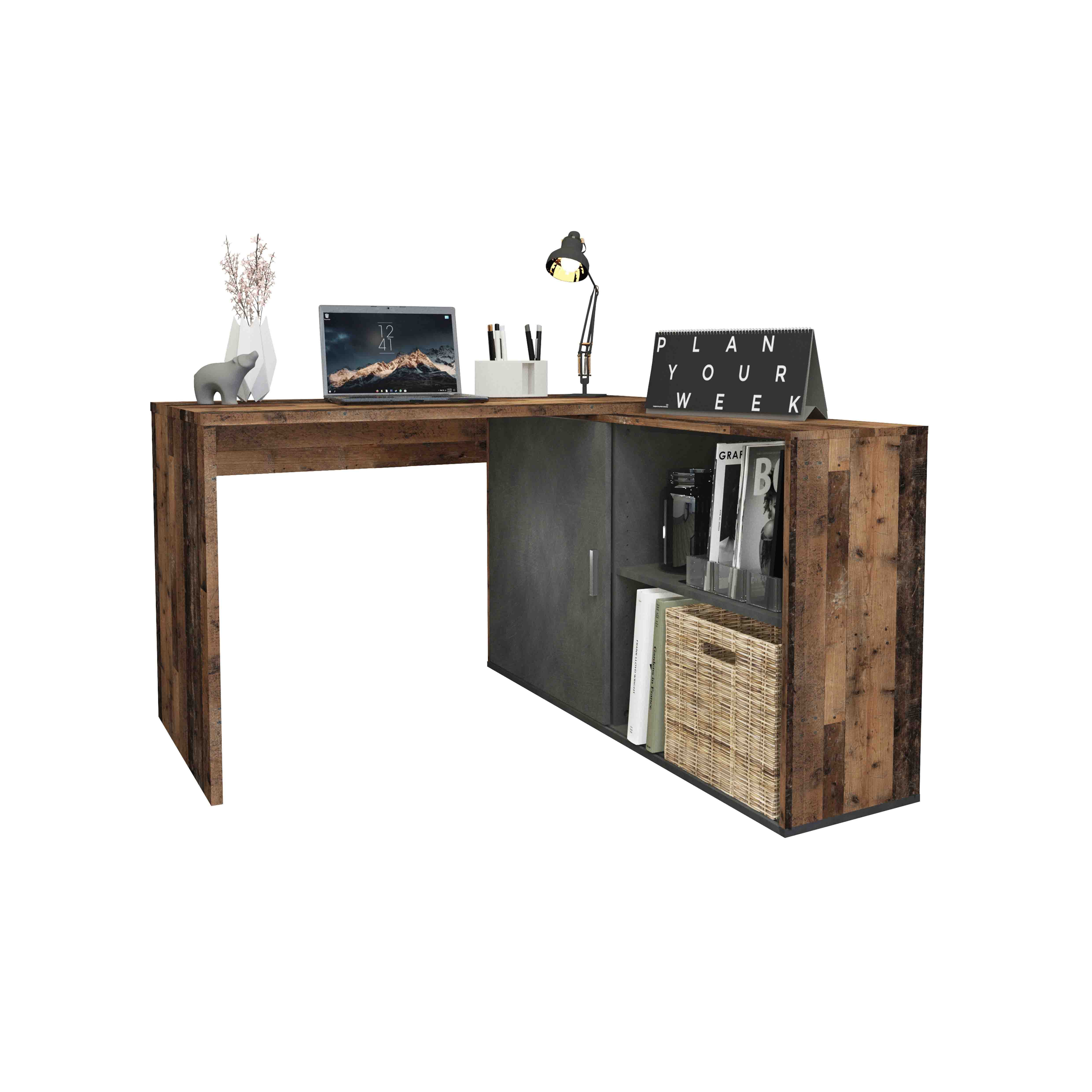 Het bureau kan in 4 verschillende opstellingen opgebouwd worden, is vervaardigd uit een stevige spaanplaat en afgewerkt met een sterke melamine. Door zijn speelse opstelling is dit bureau goed te plaatsen in zowel de woonkamer, slaapkamer als studeerkamer. Gemakkelijk te monteren door middel van de bijgeleverde montagehandleiding. Elk vak is voorzien van 1 verstelbare legplank, het schuifpaneel kun je naar links of rechts verplaatsen. In de bureaukast is voldoende opbergruimte voor bijvoorbeeld mappen, boeken en andere kantoorartikelen. Verkrijgbaar in meerdere kleuren.