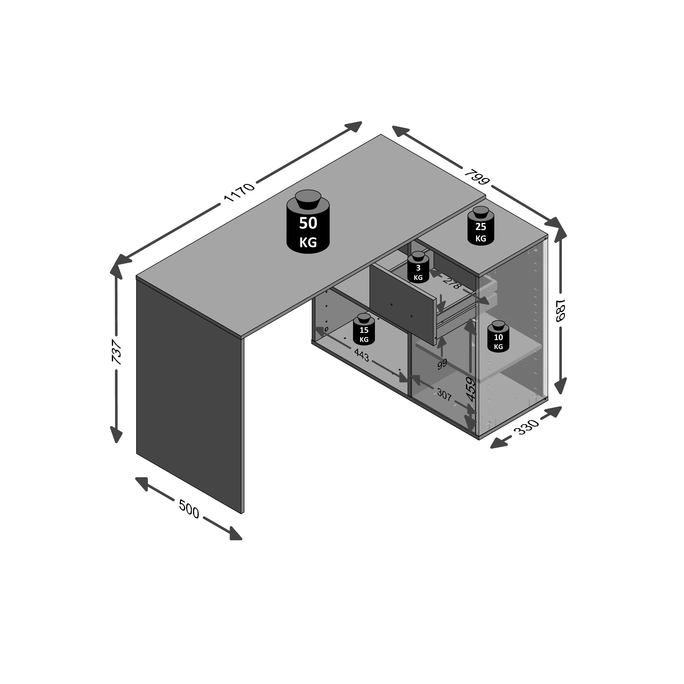 Bekijk productErgonomaAanbouwtafel Ergonoma Lichtgrijs Zwart