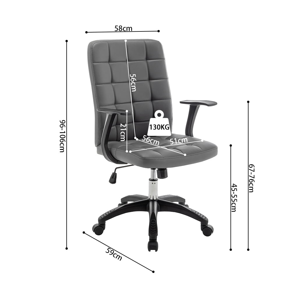 De verstelbare zithoogte van 45 tot 55 cm zorgt ervoor dat je de stoel eenvoudig kunt aanpassen aan jouw persoonlijke voorkeuren. Met een zitdiepte van 56 cm en een comfortabele kunstleren rugleuning ervaar je een ergonomische zithouding, wat bijdraagt aan een betere werkervaring.
