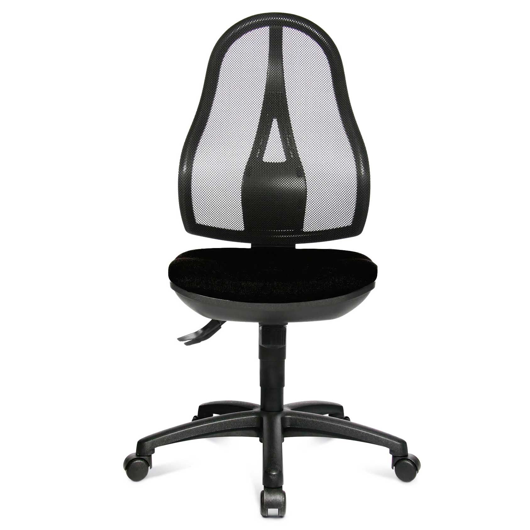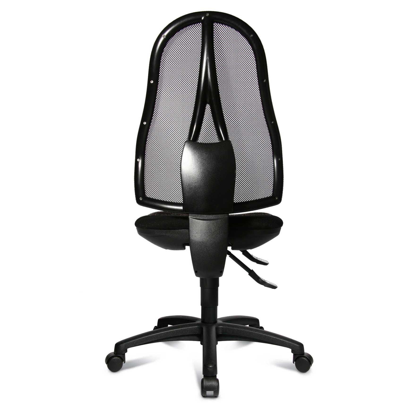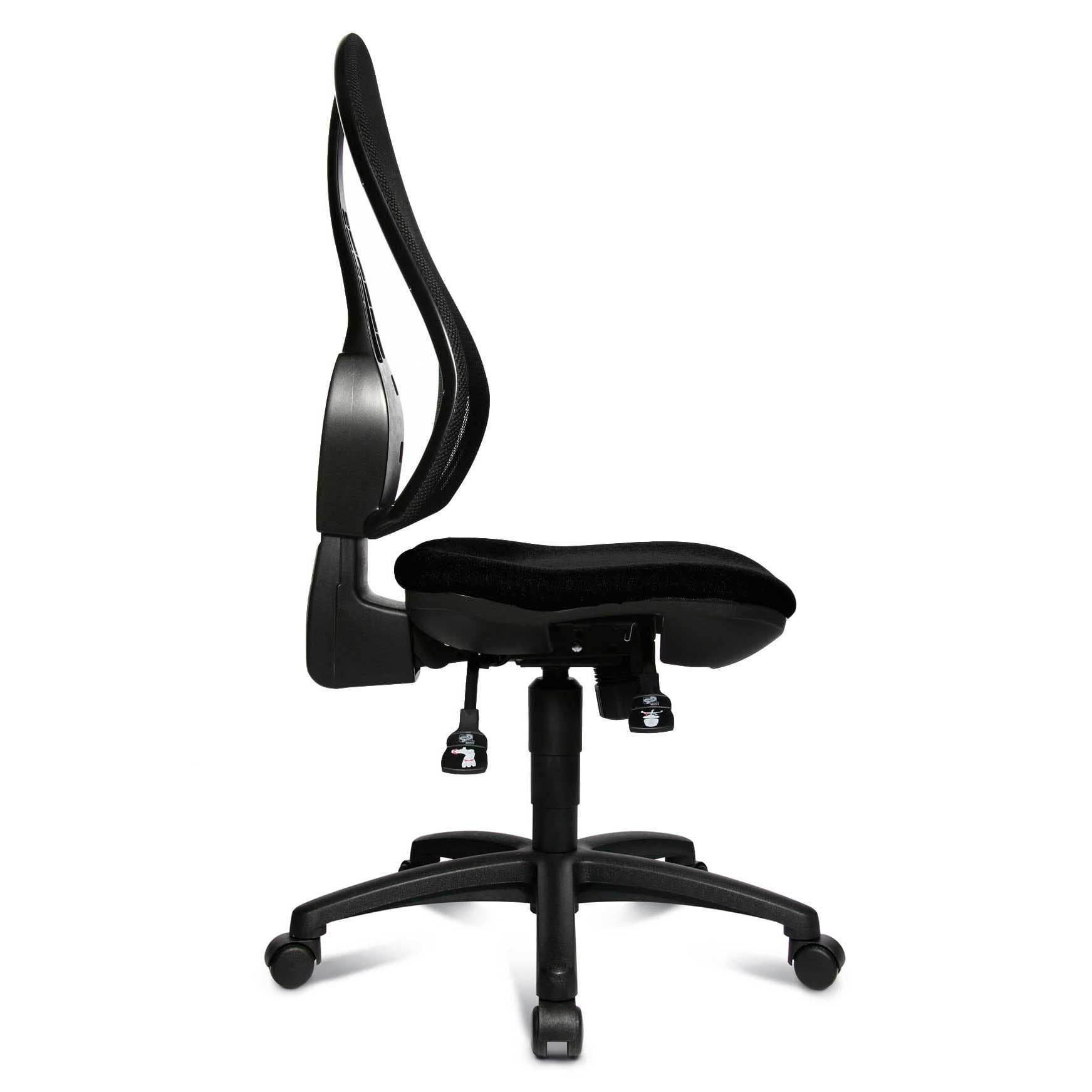 Deze stoel heeft een achterrug van een frame in volledig kunststof en is bespannen met een netstof voor een goede ventilatie. De achterrug is tevens traploos in hoogte en schuinte in te stellen. De voorgevormde zitting zorgt voor een optimale ondersteuning van het bekken hetgeen weer een positieve werking heeft op de wervelkolom en wervelschijven. De zitting en rug hebben en synchroon systeem dat op je eigen lichaamsgewicht in te stellen is en op elke positie te fixeren is. Het onderstel is van zwarte polyamide. Armleggers zijn optioneel leverbaar, zie bij onderstaand bij bijpassende artikelen.