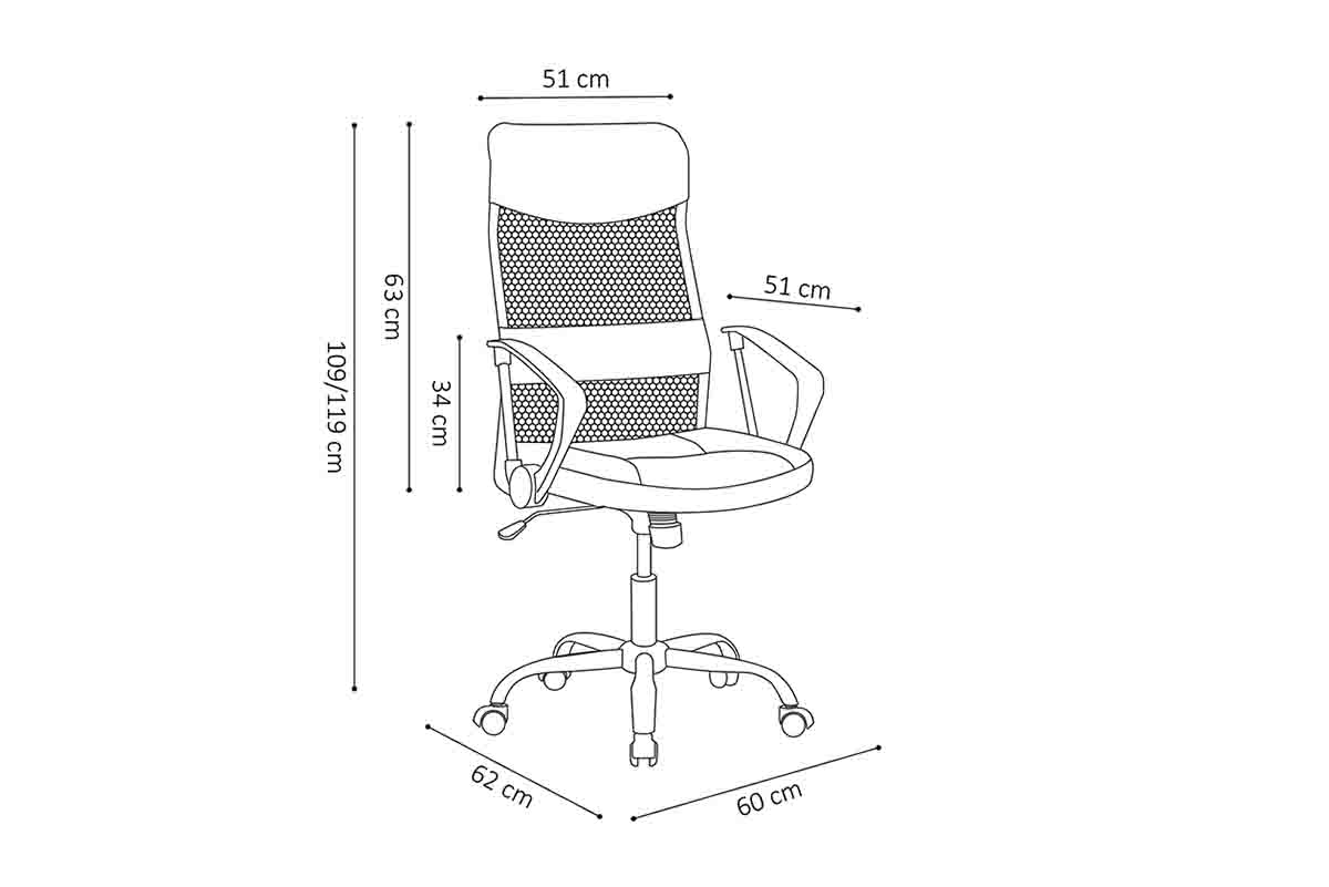 Eenvoudig maar fijne bureaustoel. De zithoogte van de bureaustoel is in hoogte verstelbaar van 46 cm tot 56 cm en het zitvlak heeft een polyester bekleding.