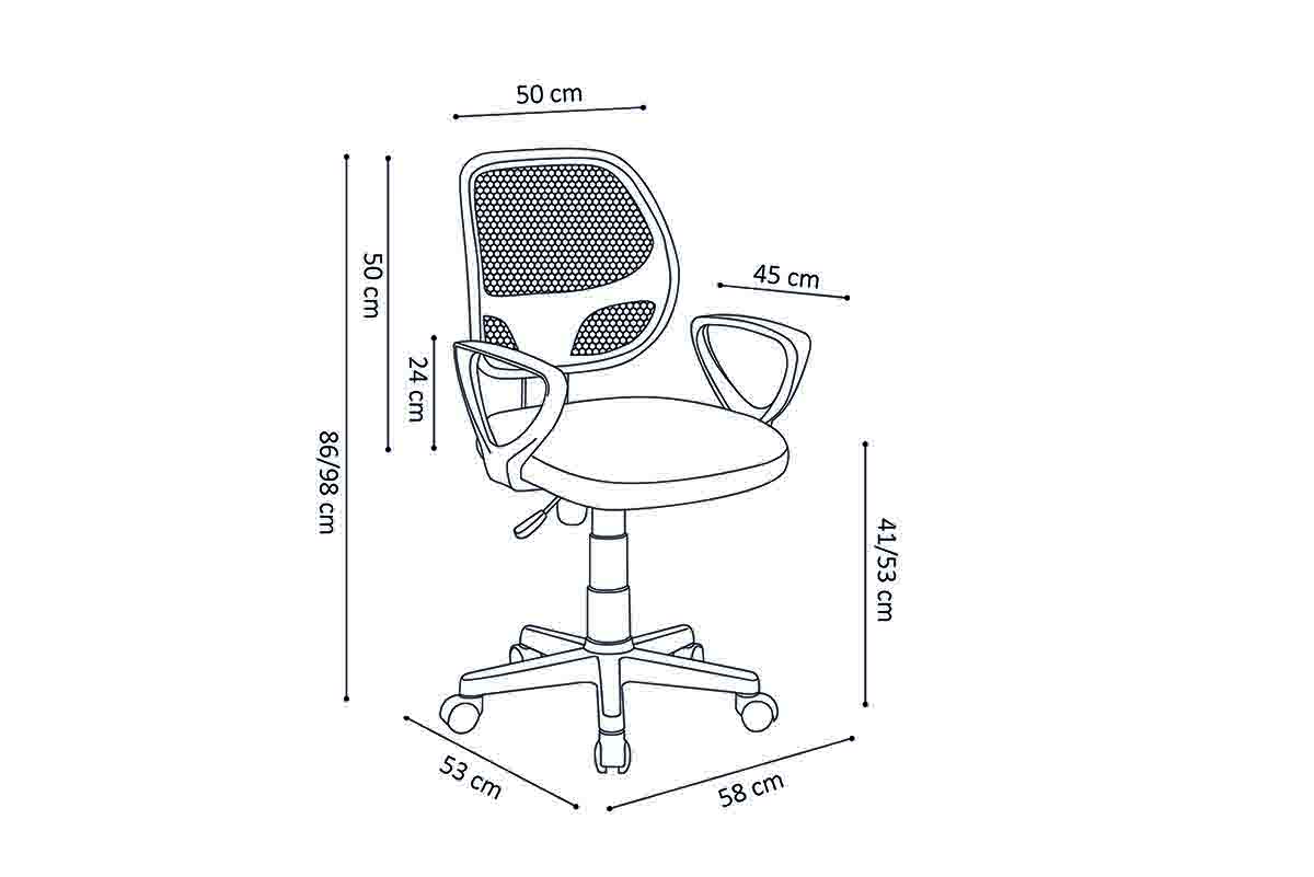 Leuke (kinder-) bureaustoel in meerdere kleuren. De zithoogte van de bureaustoel is in hoogte verstelbaar van 41 cm tot 53 cm en het zitvlak heeft een polyester bekleding.
