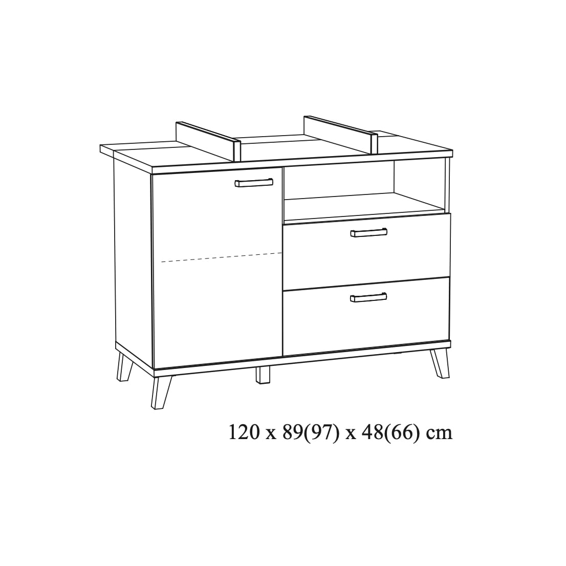 De Commode Finn Eiken is een functioneel en stijlvol meubelstuk voor de babykamer. Met zijn afmetingen van 120x89x48cm biedt het voldoende ruimte voor het organiseren van babykleertjes, luiers en andere benodigdheden.