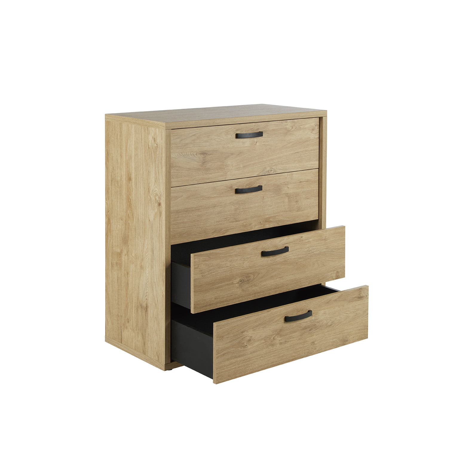 De Commode Livia is voorzien van 4 brede laden, waardoor je gemakkelijk en georganiseerd je kleding en accessoires kunt opbergen. Het tijdloze ontwerp past moeiteloos in diverse interieurstijlen, terwijl de sterke eiken melamine afwerking zorgt voor duurzaamheid en een natuurlijke uitstraling.