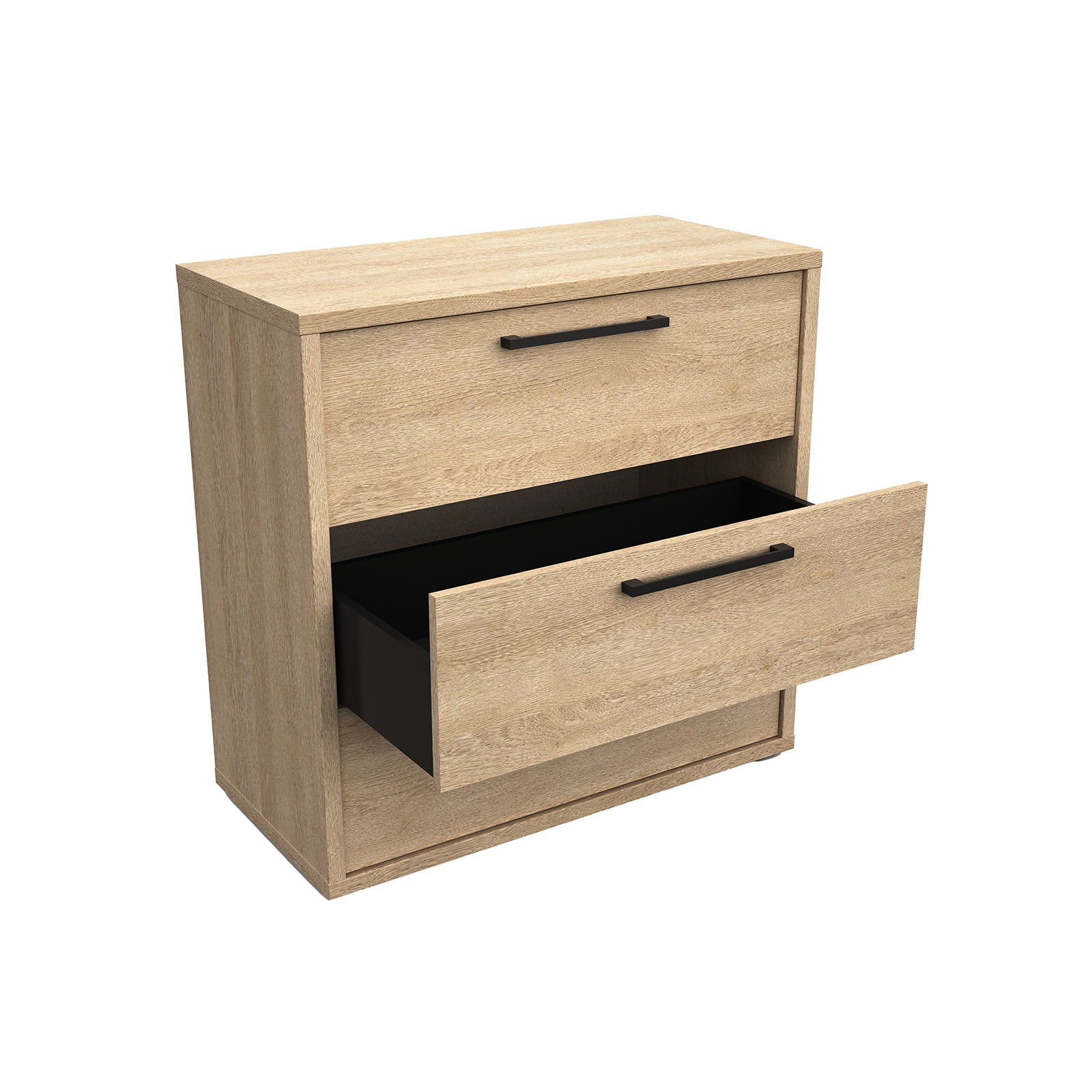 De commode Yumi in eiken is een stijlvolle en praktische toevoeging aan je interieur. Met een breedte van 90 cm biedt deze ladekast voldoende opbergruimte voor kleding, verzorgingsproducten of andere benodigdheden. Dankzij de sterke melamine-afwerking is het meubel krasbestendig en eenvoudig schoon te houden.