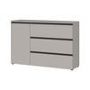 Het Dressoir Alec Grijs in 135 cm biedt niet alleen ruime opslagmogelijkheden met zijn 3 laden (elk belastbaar tot 10 kg) en 1 deur, waarachter zich 2 verstelbare planken bevinden (elk belastbaar tot 10 kg), maar ook een stijlvolle toevoeging aan je interieur.