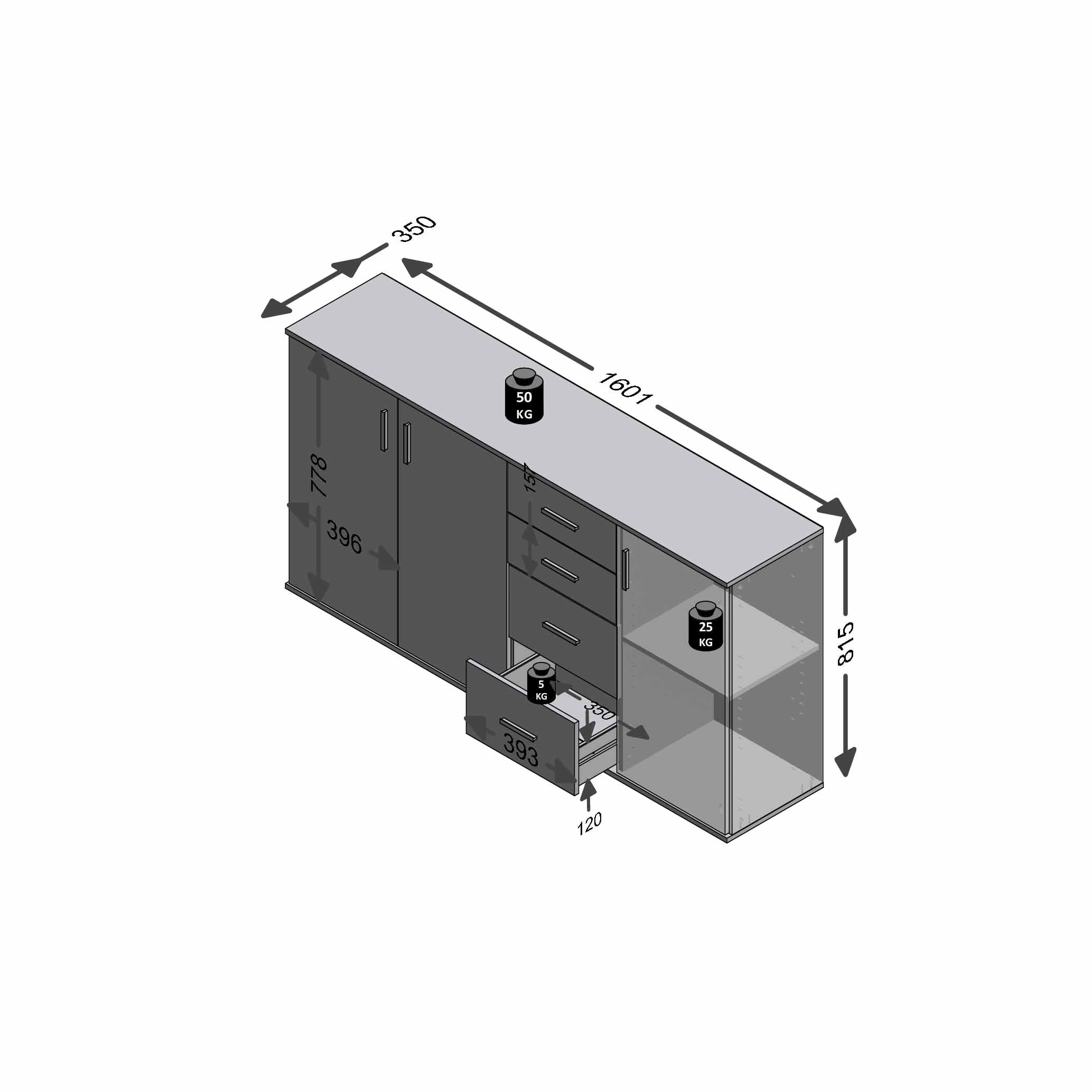 Dressoir Ares Beton 160 cm