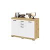 Dit handige dressoir kun je dankzij zijn handige afmetingen gemakkelijk kwijt in je woonkamer, kantoor of keuken. Achter elke deur bevindt zich 1 verstelbare legplank, in combinatie met de 2 lades heb je voldoende opbergruimte. Bovenop de kast kun je nog enkele leuke accessoires kwijt. Deze kast is vervaardigd uit een stevige spaanplaat en afgewerkt met een sterke melamine. Eenvoudig te monteren door middel van de bijgeleverde montagehandleiding. Bekijk ook de bijpassende artikelen uit deze serie!
