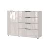 Het dressoir Siena Kasjmier 134 cm biedt een ruime en stijlvolle opbergoplossing. Het dressoir heeft vier lades en een deur met daarachter drie verstelbare legborden. De lades en deuren sluiten geruisloos dankzij de geïntegreerde demping. Het bovenblad is belastbaar tot 30 kg, terwijl de onderste plank tot 15 kg kan dragen. De combinatie van kasjmier, glasfronten en een glasblad zorgt voor een elegante uitstraling.