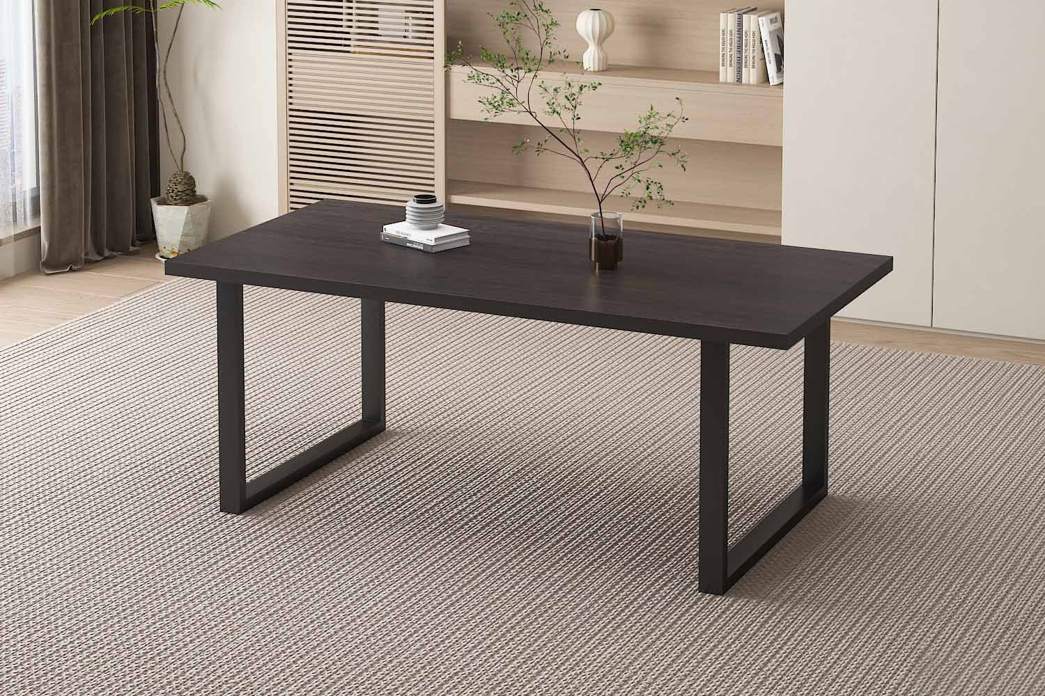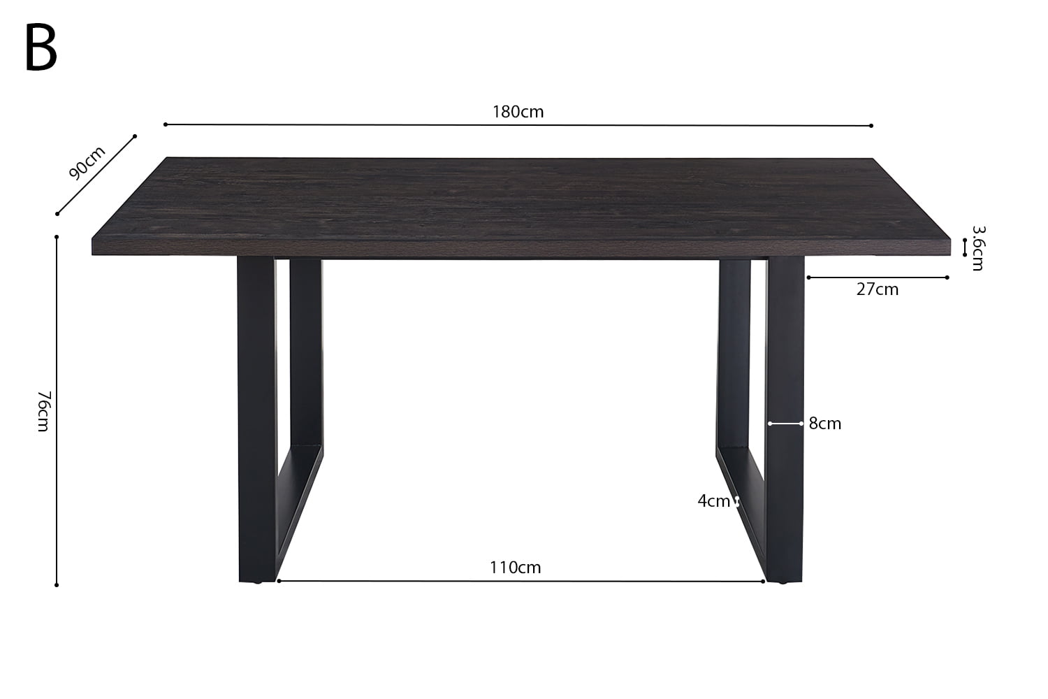 De Eetkamertafel Eugene, met een donkerbruin decor afgewerkt MDF-blad dat voorzien is van stevige ABS-randen, rust op robuuste metalen poten van 8×4 cm. Deze tafel combineert een eigentijds design met duurzame materialen. Het decor geeft het tafelblad een warme uitstraling en beschermt tegen dagelijkse slijtage. Met voldoende ruimte voor gezellige maaltijden en bijeenkomsten, is deze tafel perfect voor in je eetkamer. Geniet van langdurige kwaliteit en stijl met de Eugene eetkamertafel.