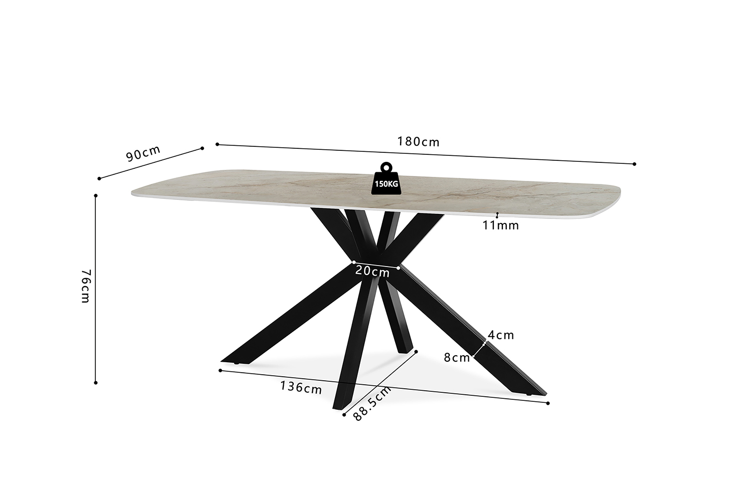 De Eetkamertafel Jody Beige Beige is een stijlvolle tafel van 180 cm, perfect voor het creëren van een gezellige en moderne eetomgeving. Met een gewicht van 64,2 kg en een hoogte van 76 cm, combineert deze tafel functionaliteit met een aantrekkelijke uitstraling.
