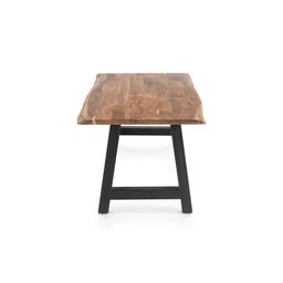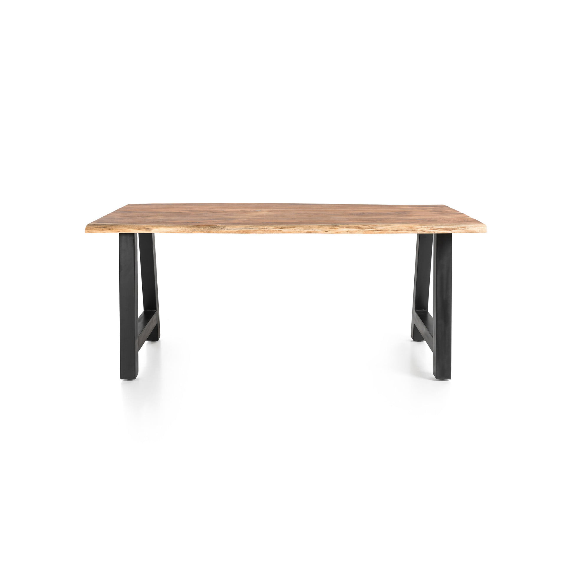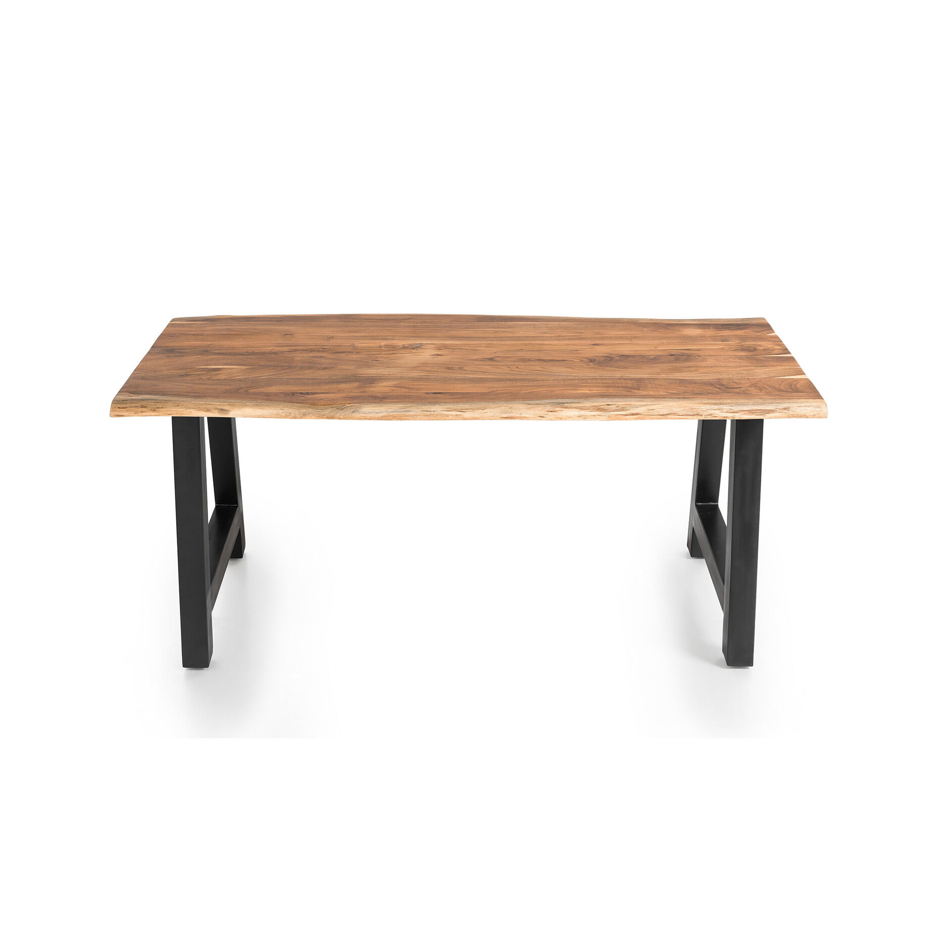 Deze stevige eetkamertafel heeft een 3,5 centimeter dik blad van acaciahout. Door zijn sterke metalen frame staat deze tafel goed op de grond. Het blad is geolied en gewaxt voor een vochtafstotend slijtvast oppervlak. De afstand tussen de poten bedraagt ongeveer 120 centimeter. Gemakkelijk te monteren doormiddel van bijgeleverde montagehandleiding. Verkrijgbaar in verschillende afmetingen.